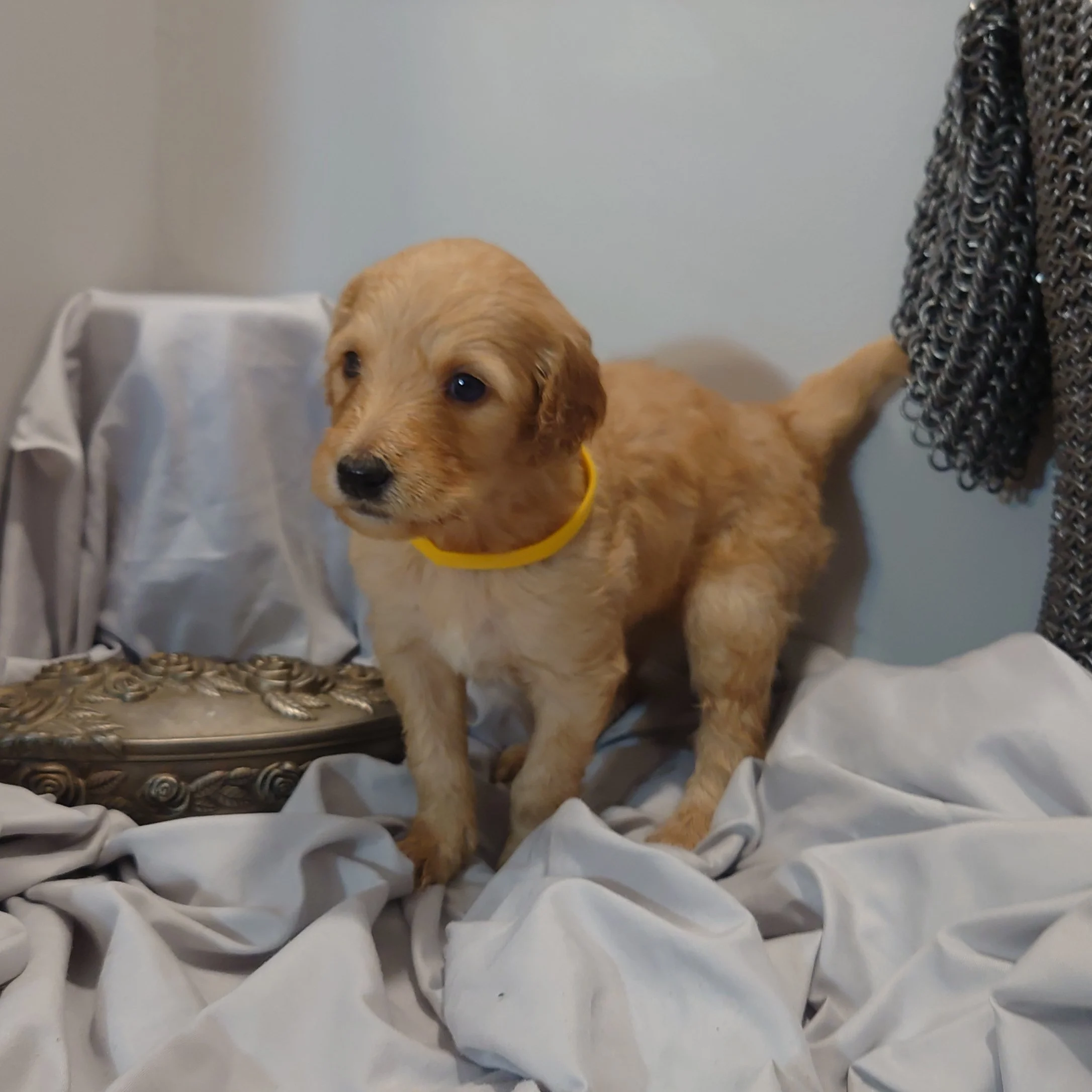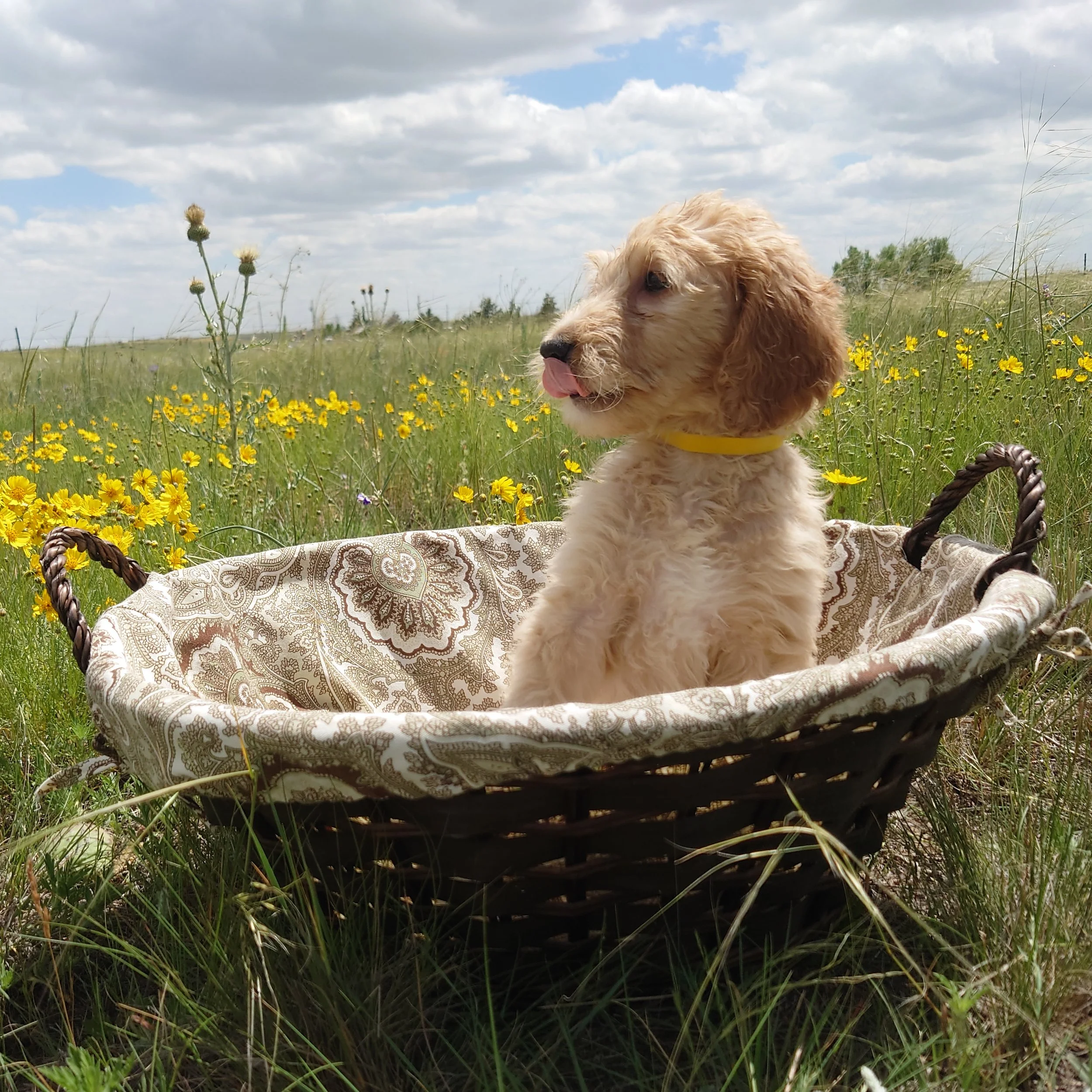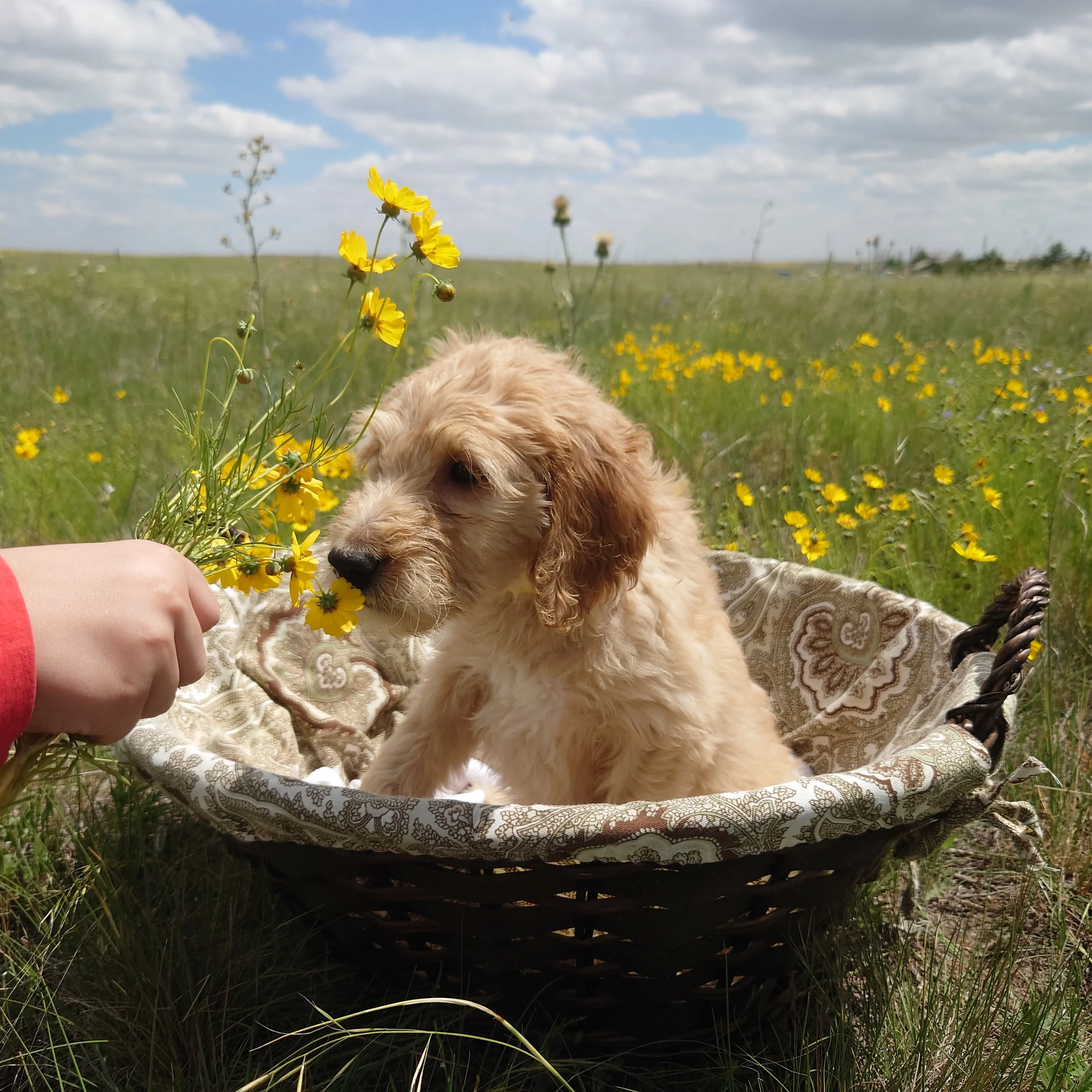 I was born April 21st, 2025. I am a female. My parents are, Standard Poodle Mom: Freya and Golden Retriever Dad: Ziggy. I am a F1 Goldendoodle.