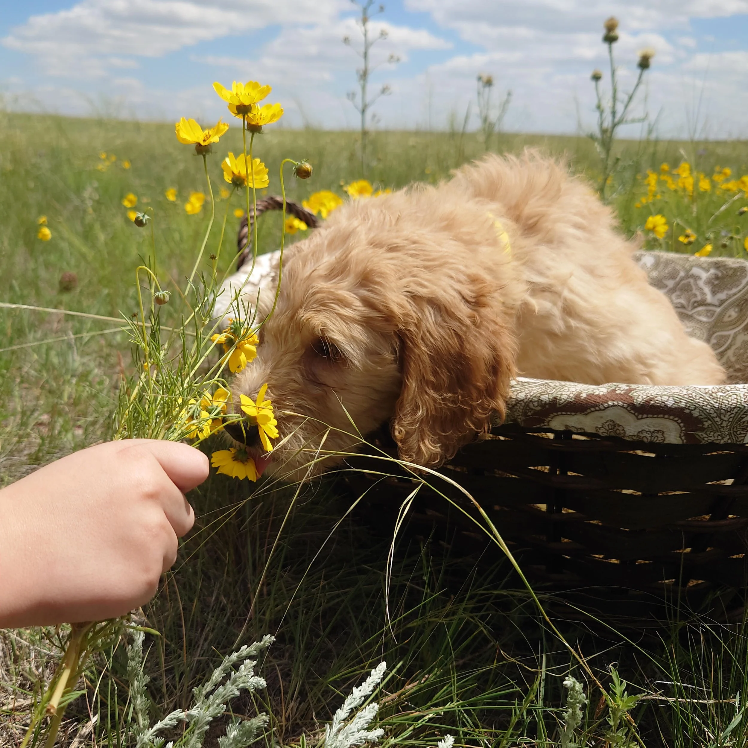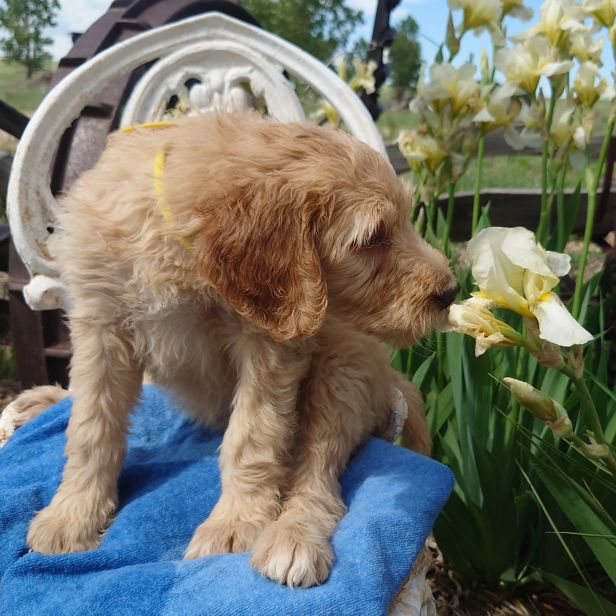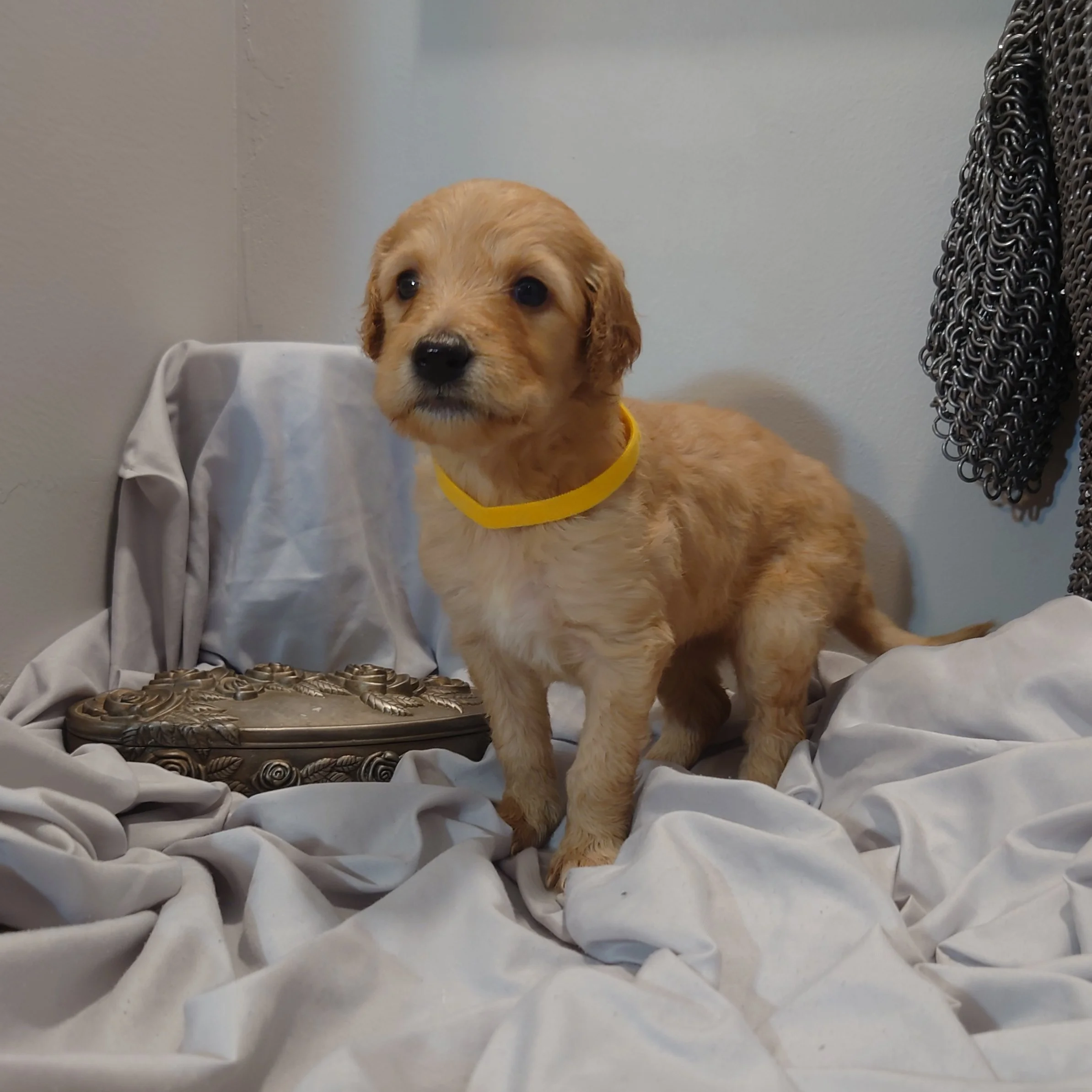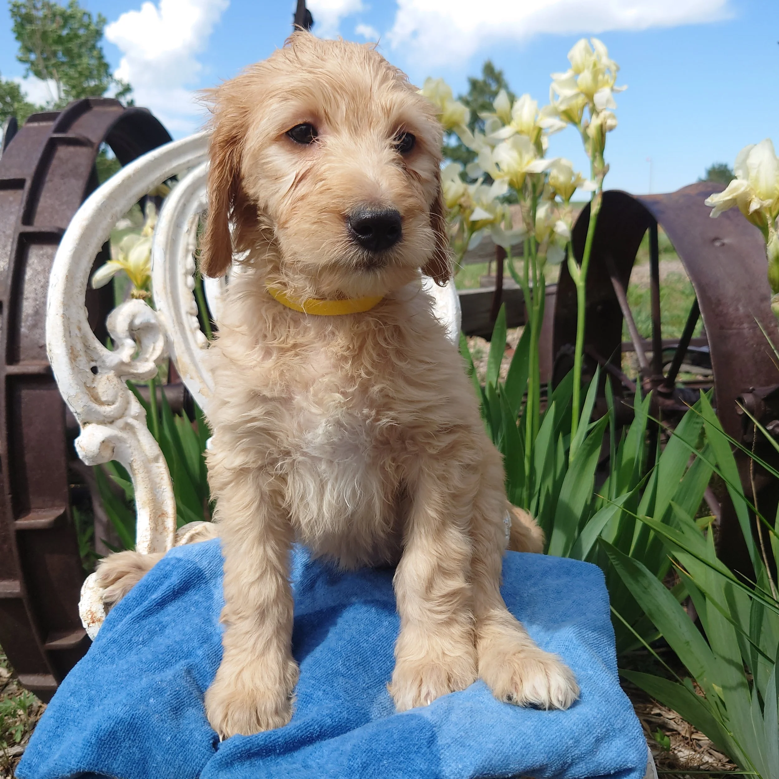 I was born April 21st, 2025. I am a female. My parents are, Standard Poodle Mom: Freya and Golden Retriever Dad: Ziggy. I am a F1 Goldendoodle.