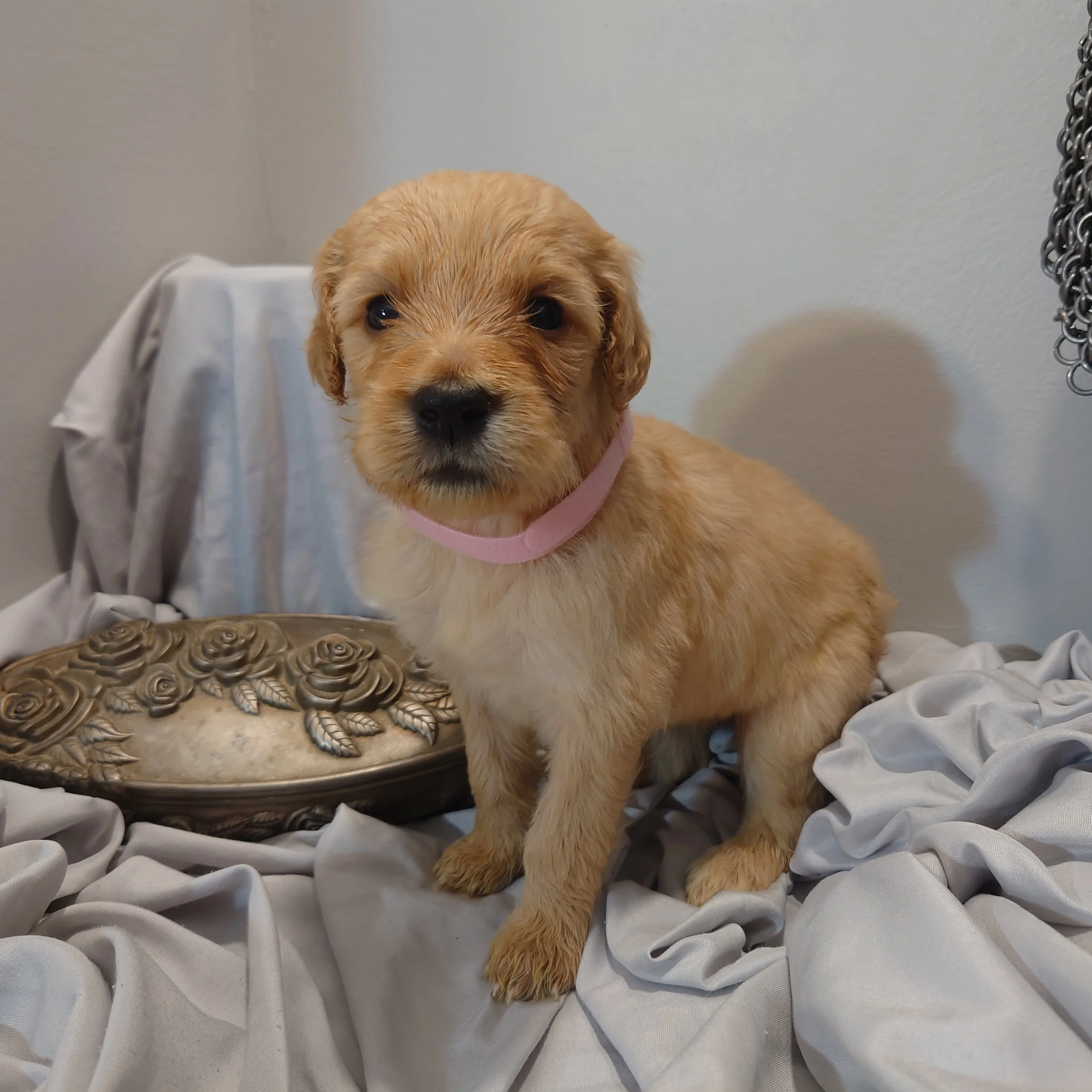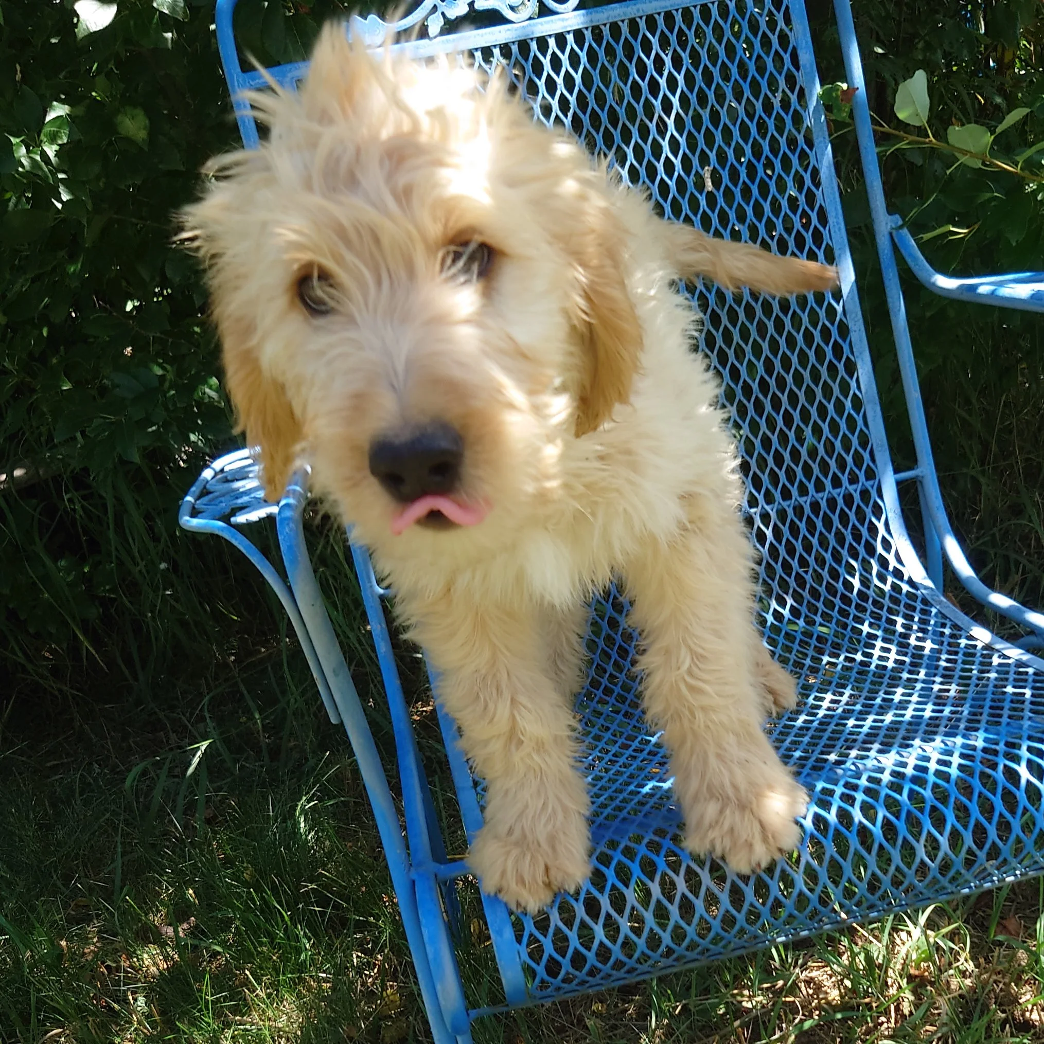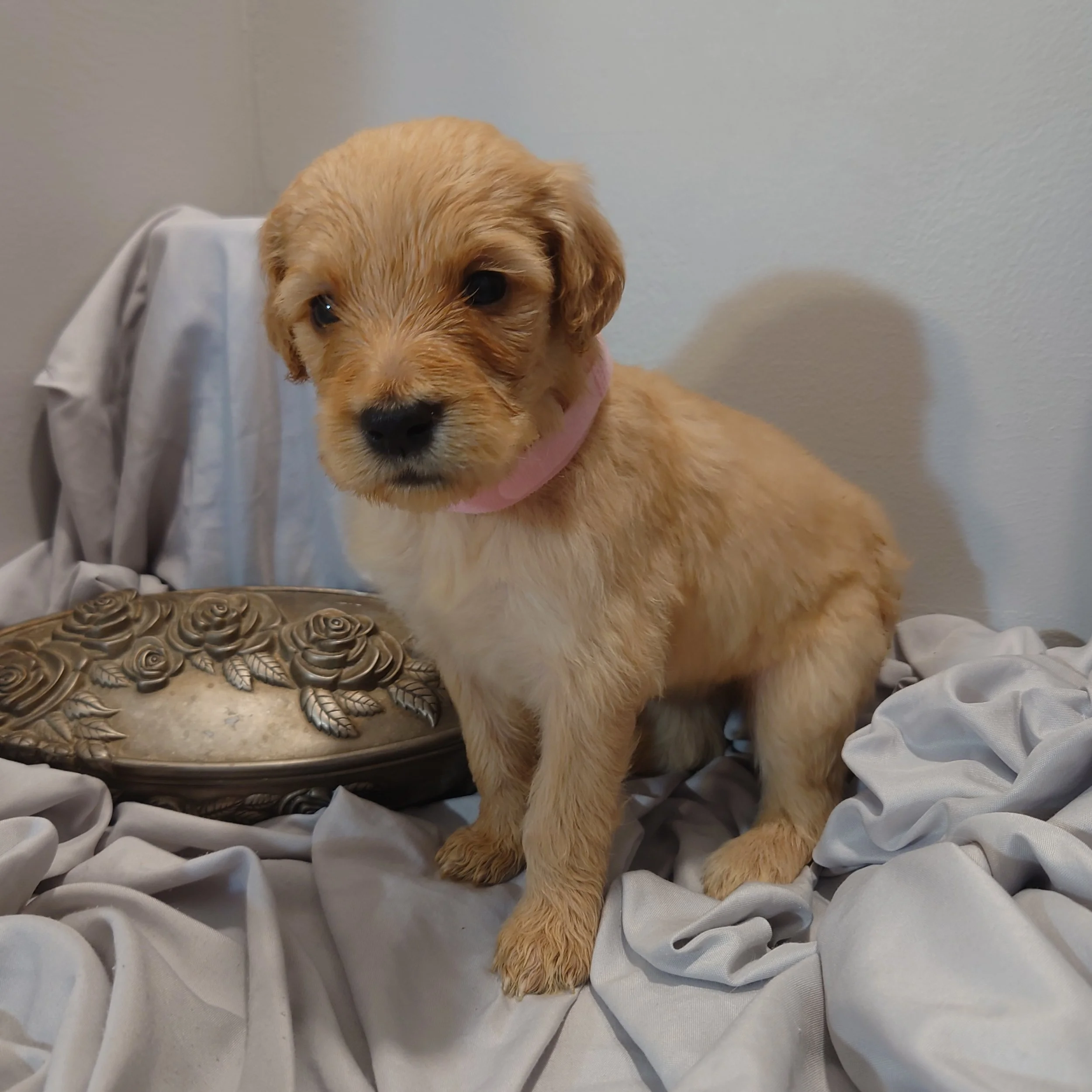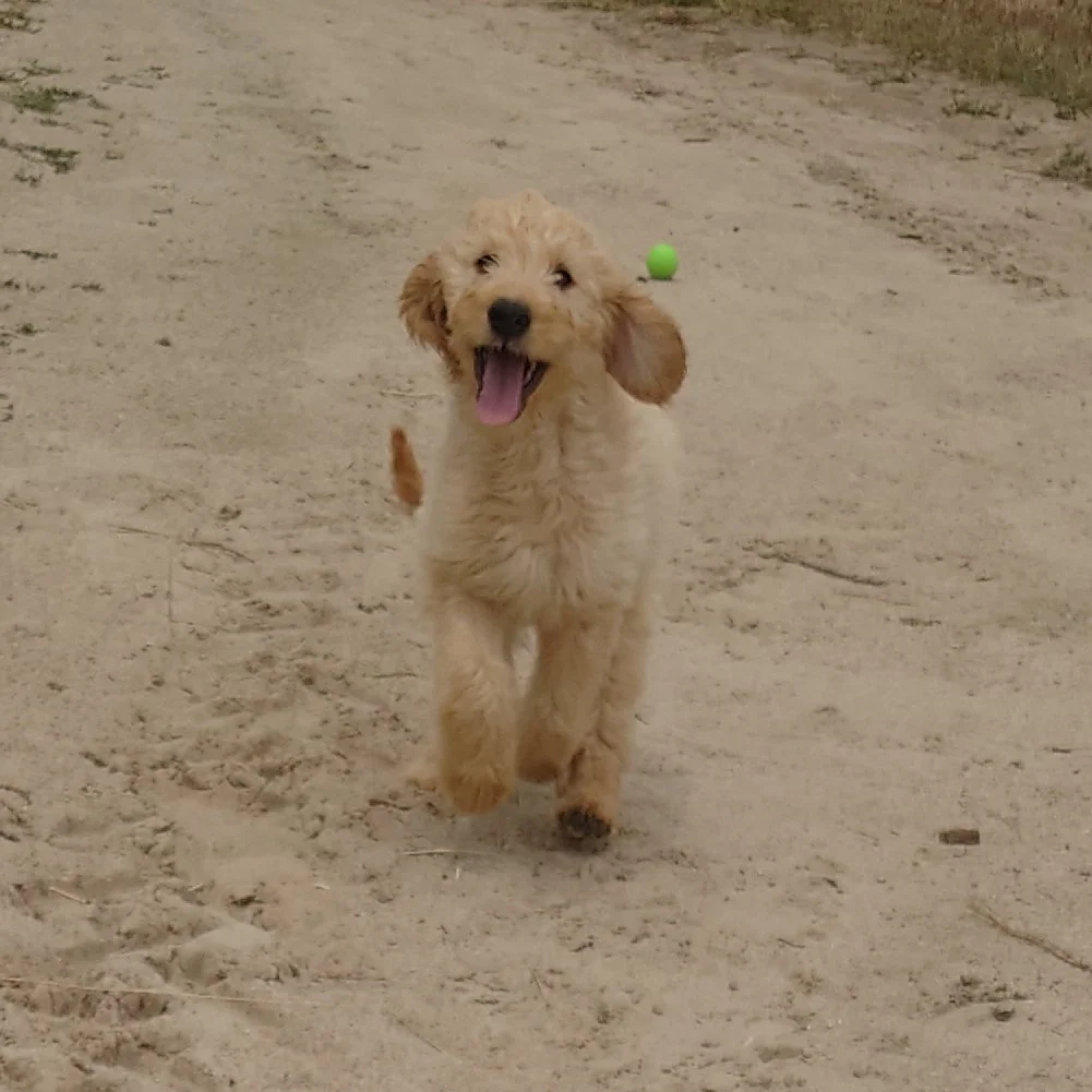 I was born April 21st, 2025. I am a female. My parents are, Standard Poodle Mom: Freya and Golden Retriever Dad: Ziggy. I am a F1 Goldendoodle.