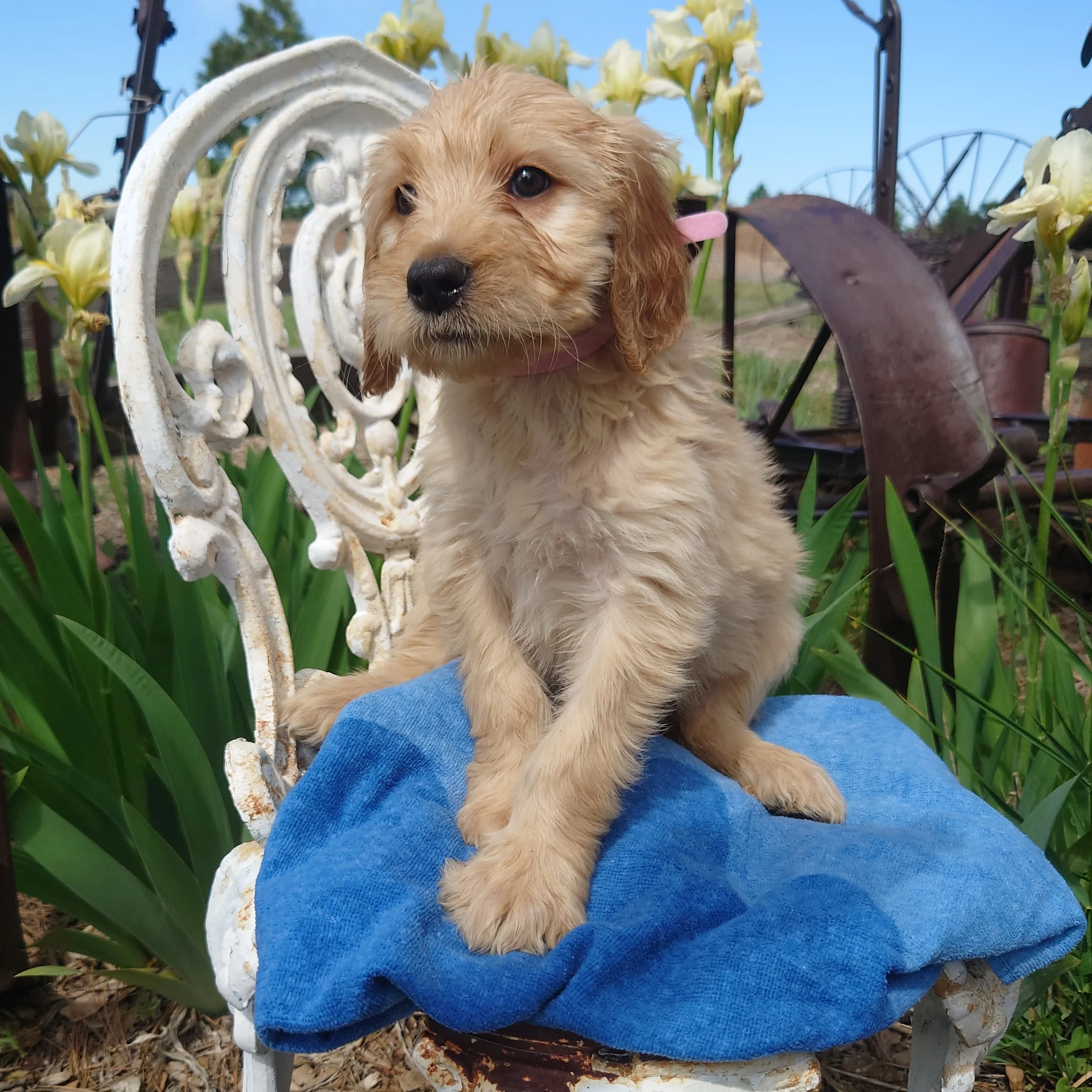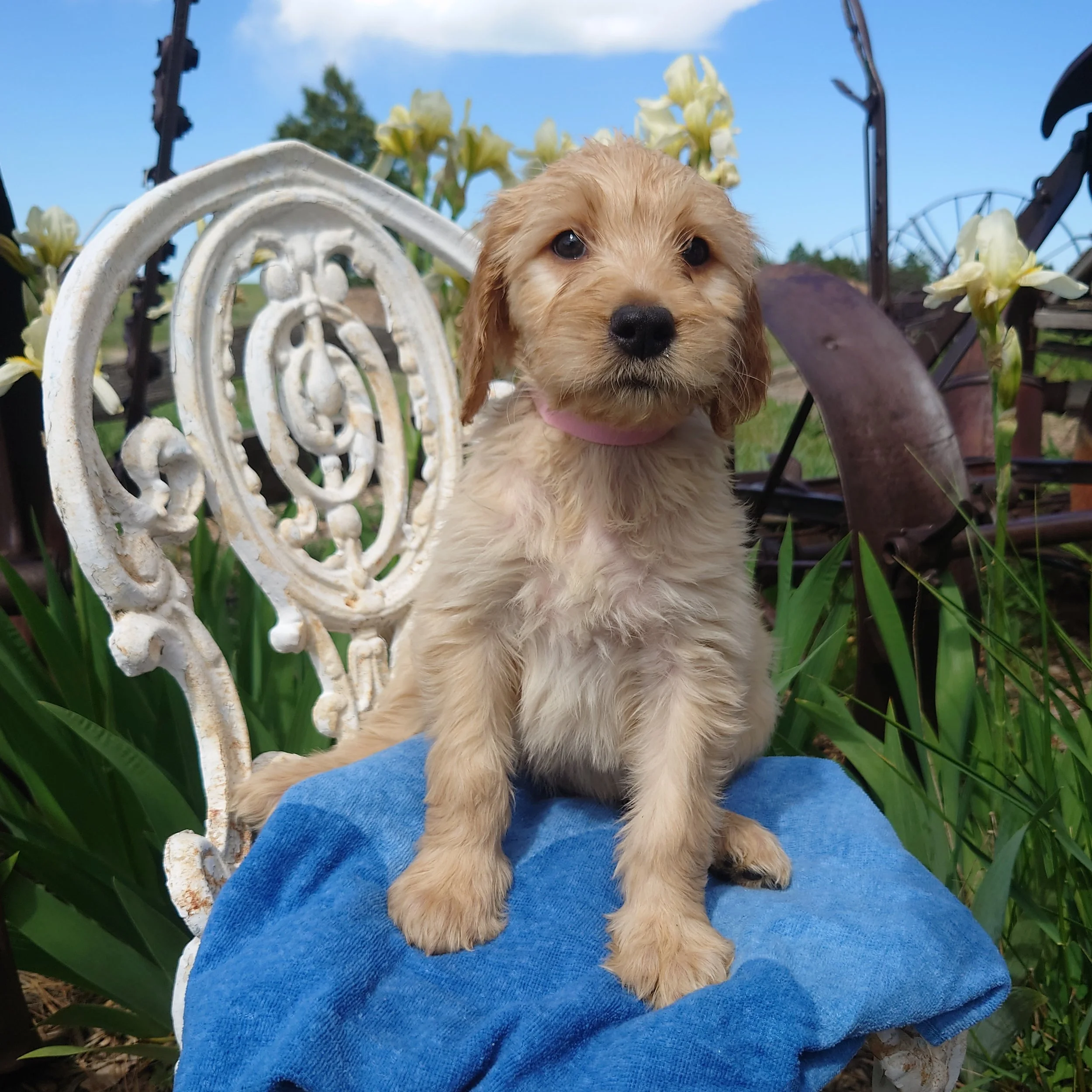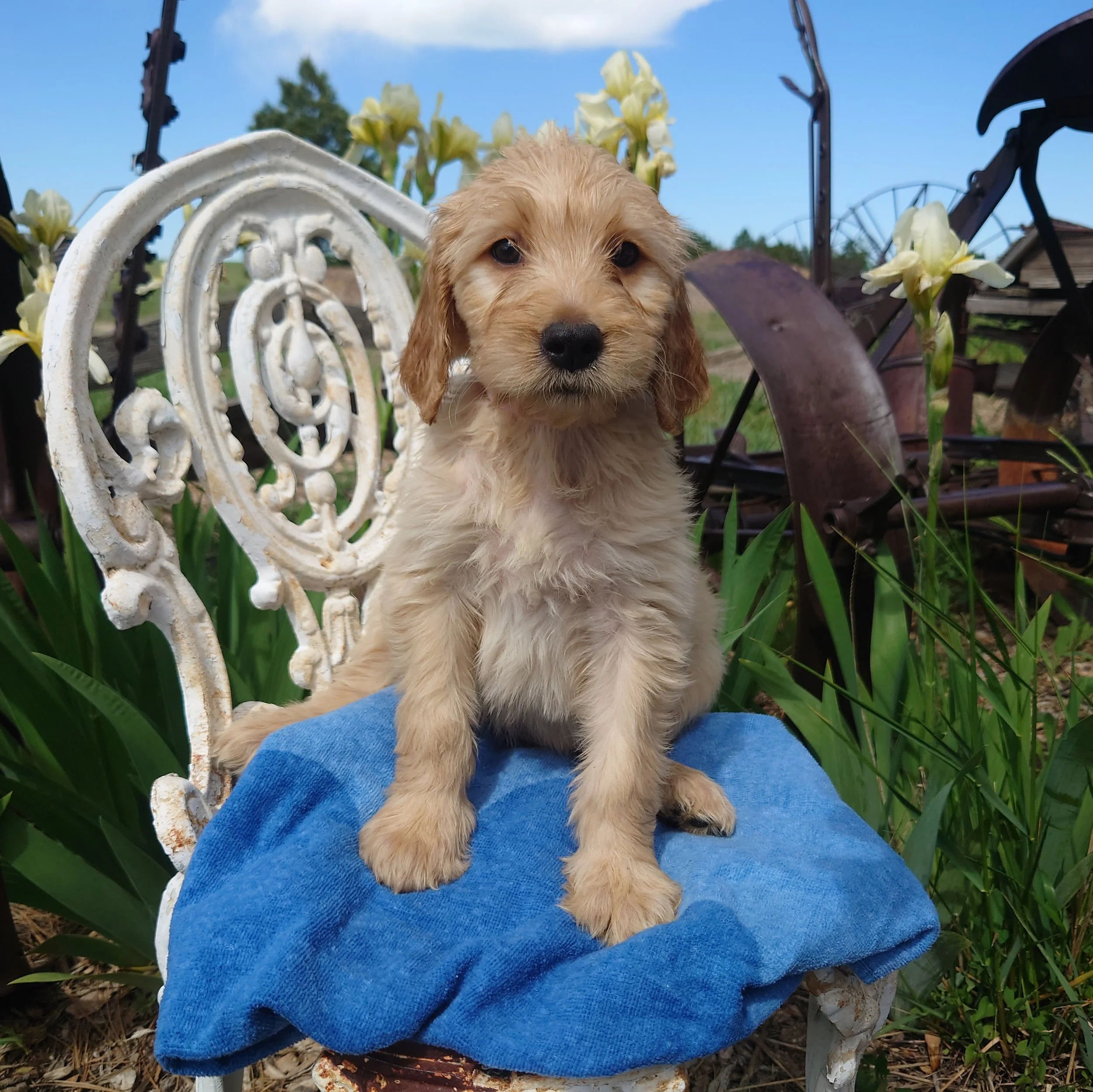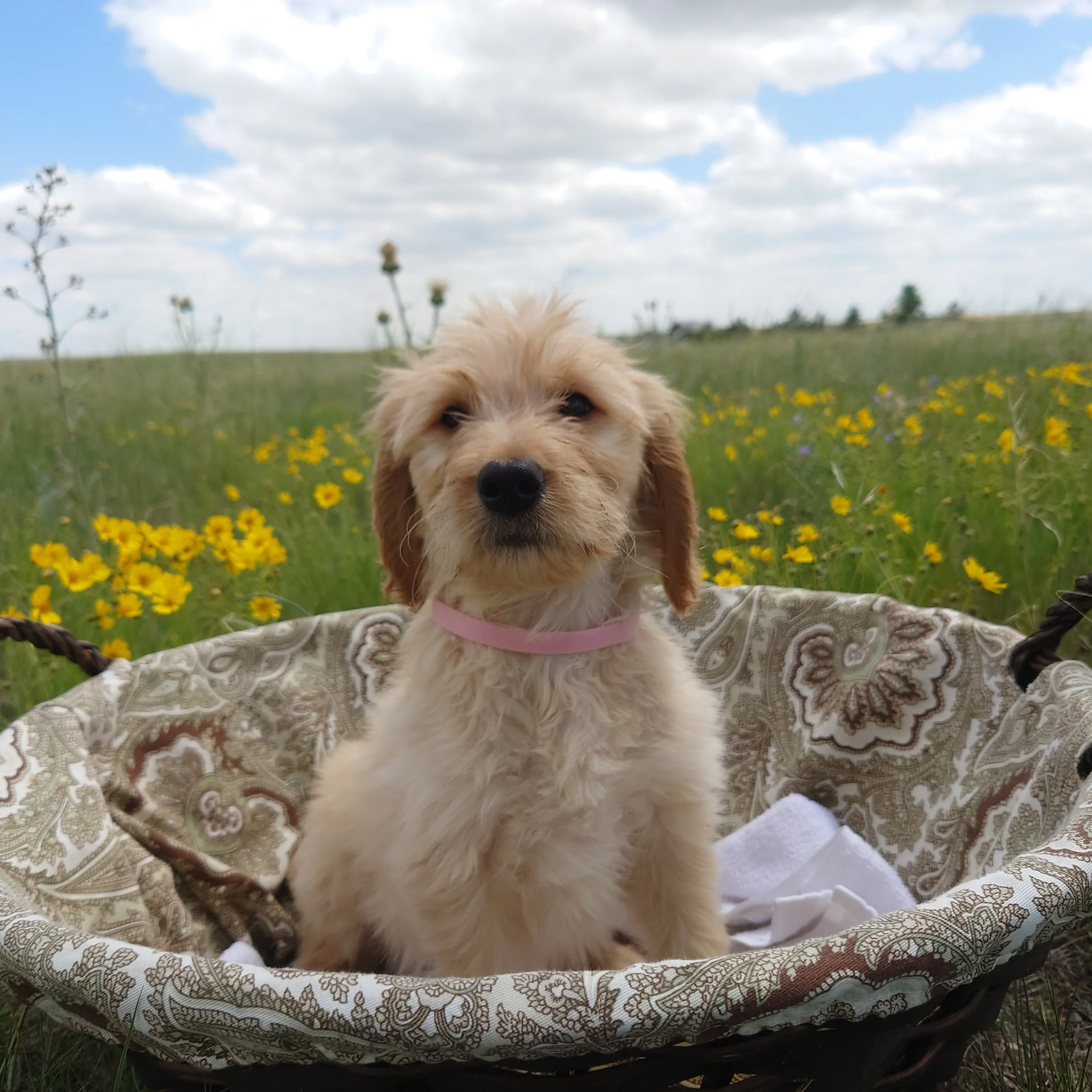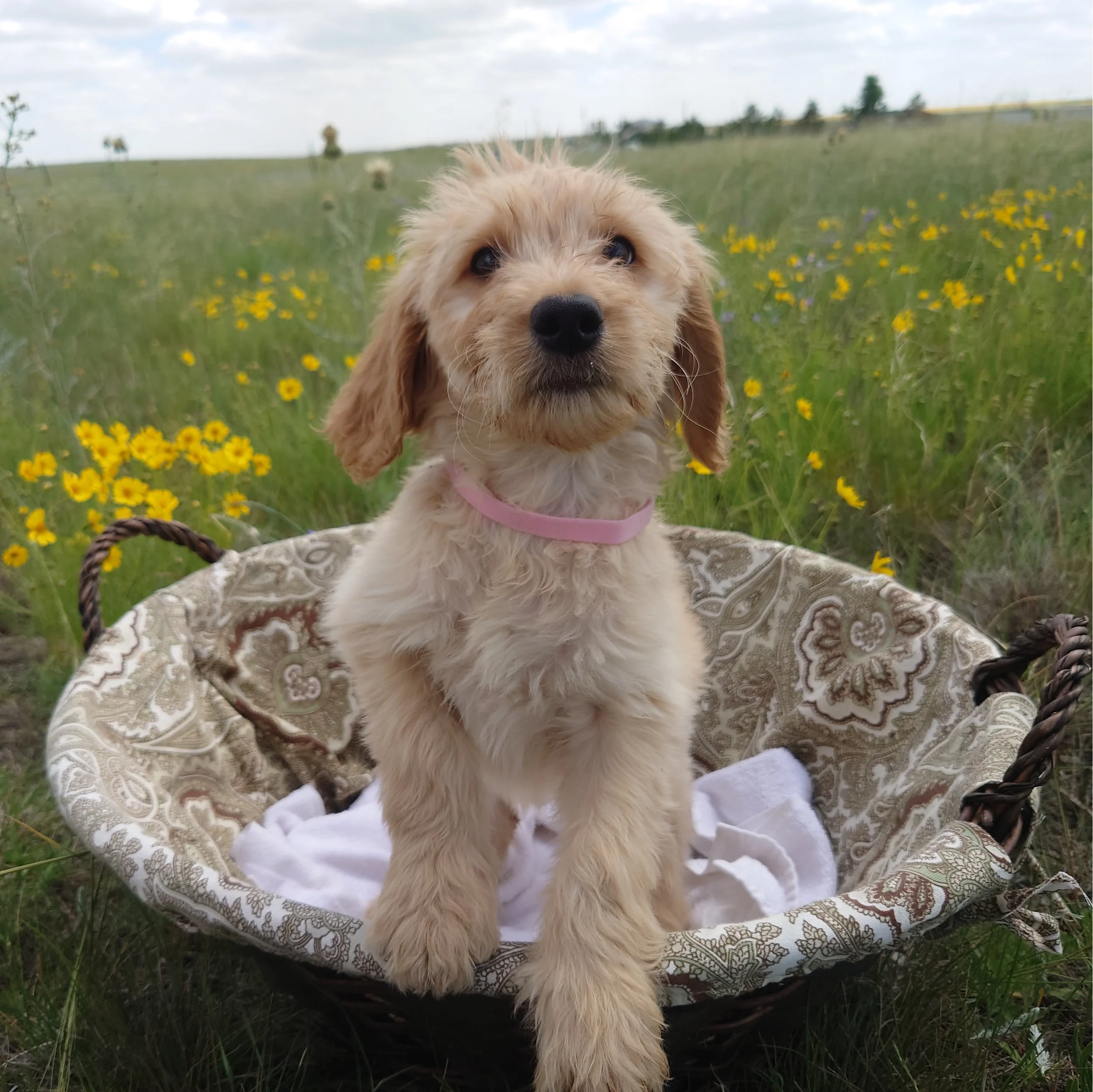 I was born April 21st, 2025. I am a female. My parents are, Standard Poodle Mom: Freya and Golden Retriever Dad: Ziggy. I am a F1 Goldendoodle.
