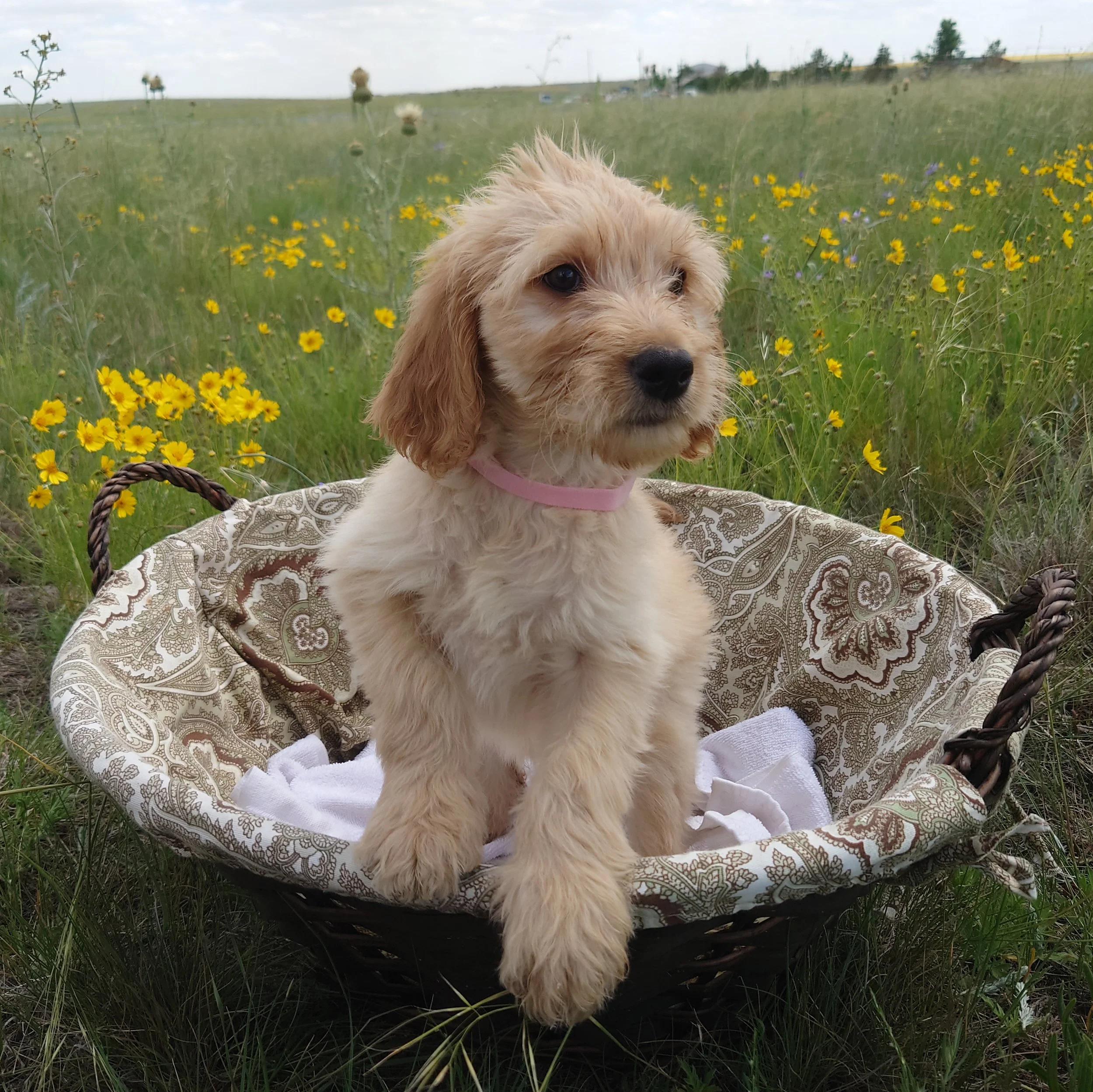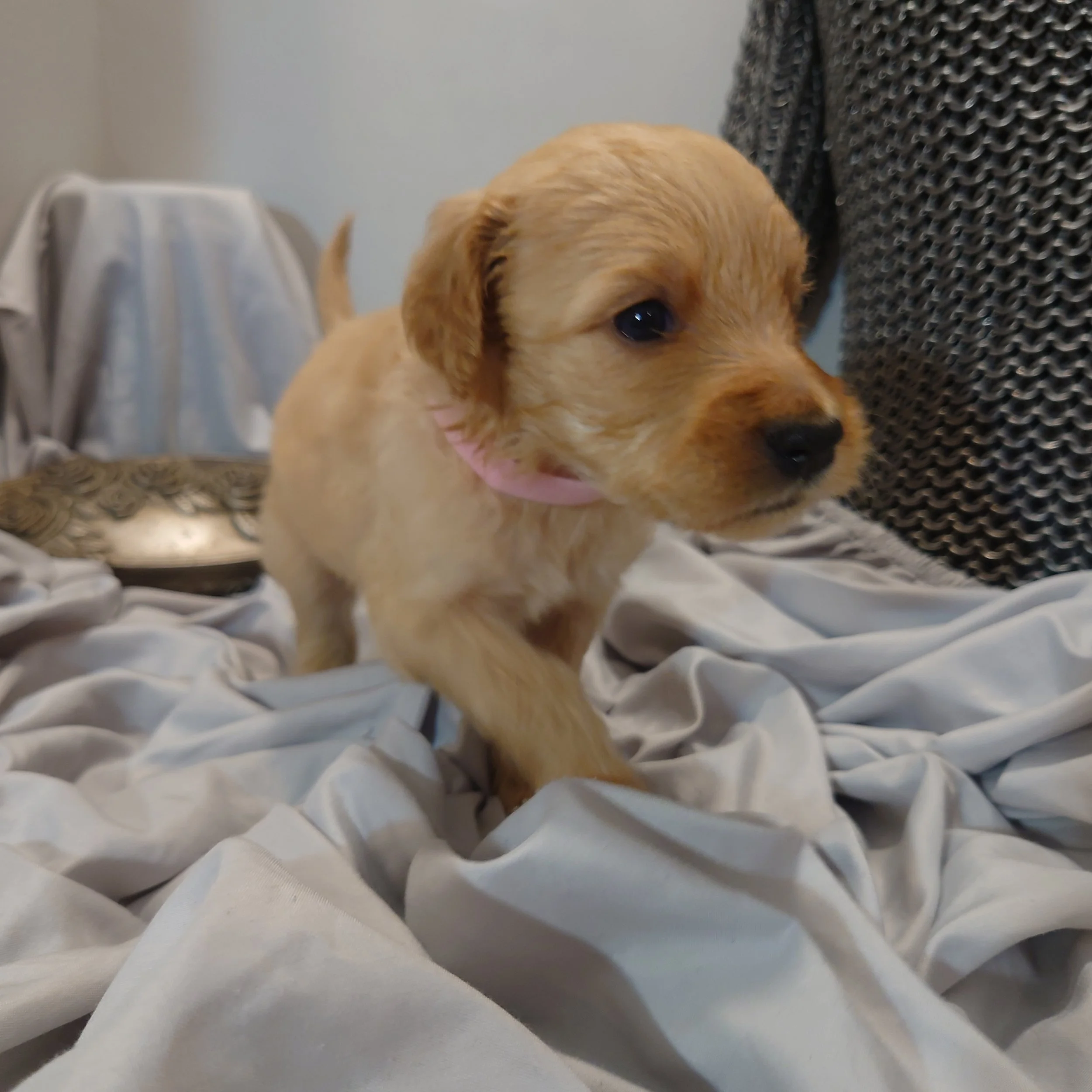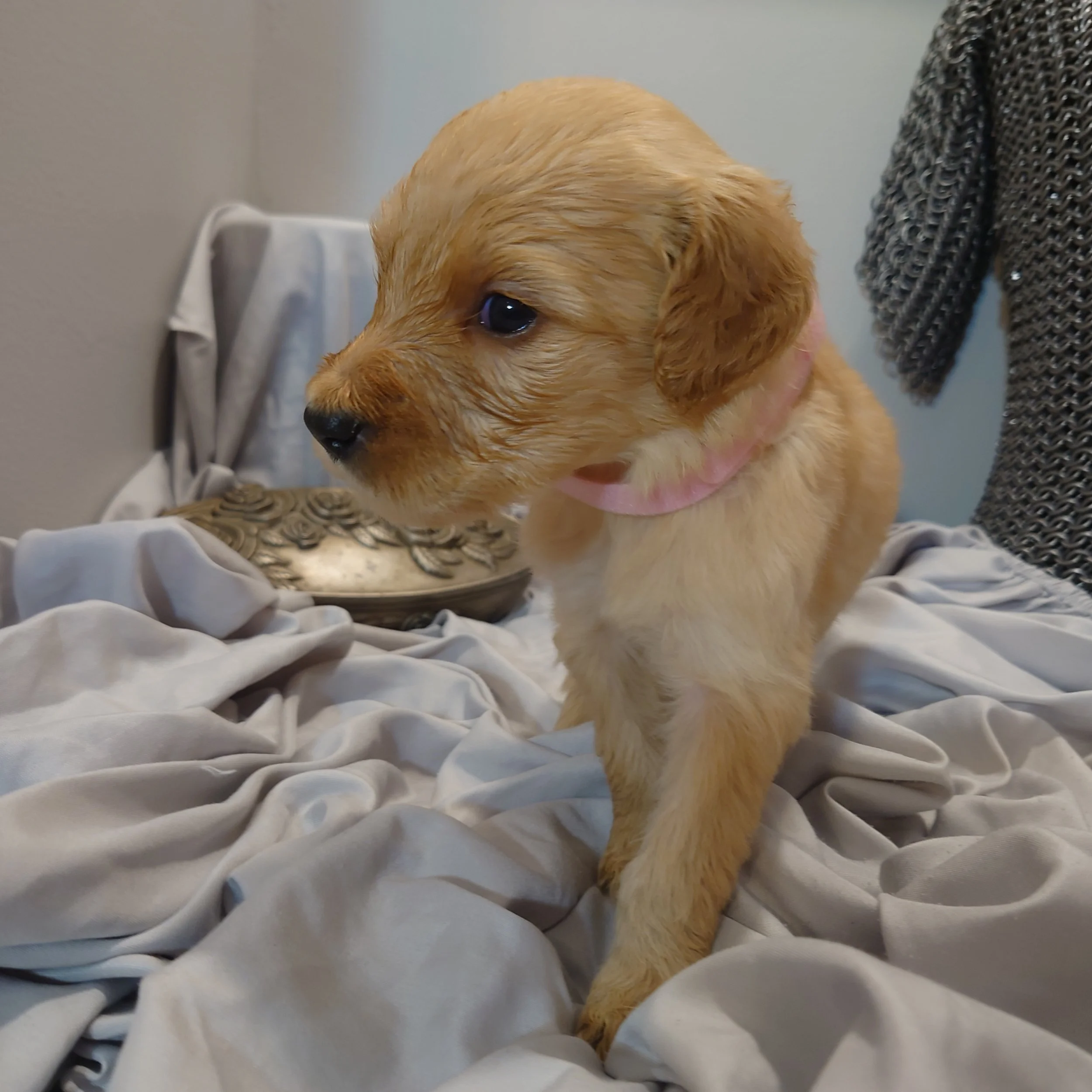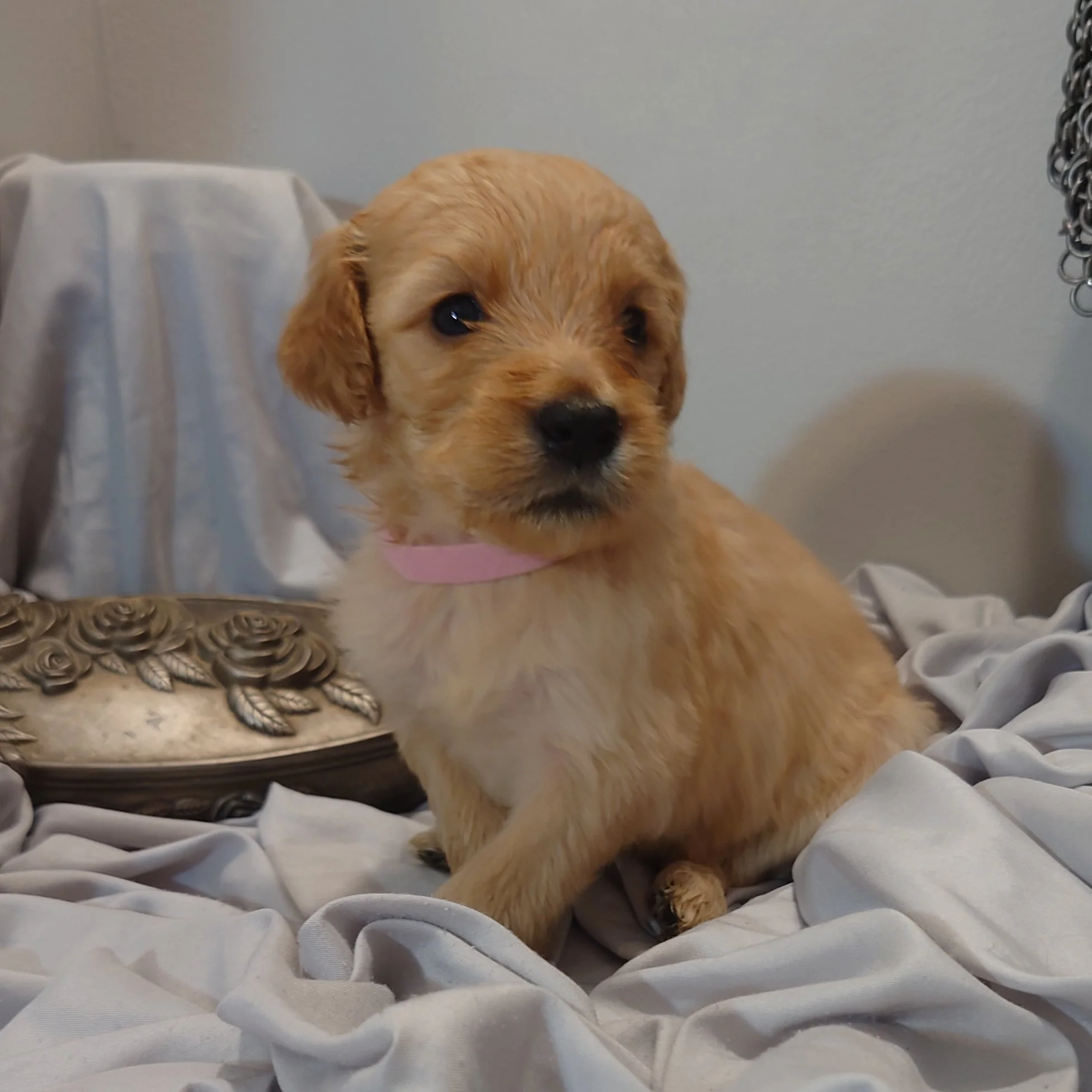 I was born April 21st, 2025. I am a female. My parents are, Standard Poodle Mom: Freya and Golden Retriever Dad: Ziggy. I am a F1 Goldendoodle.