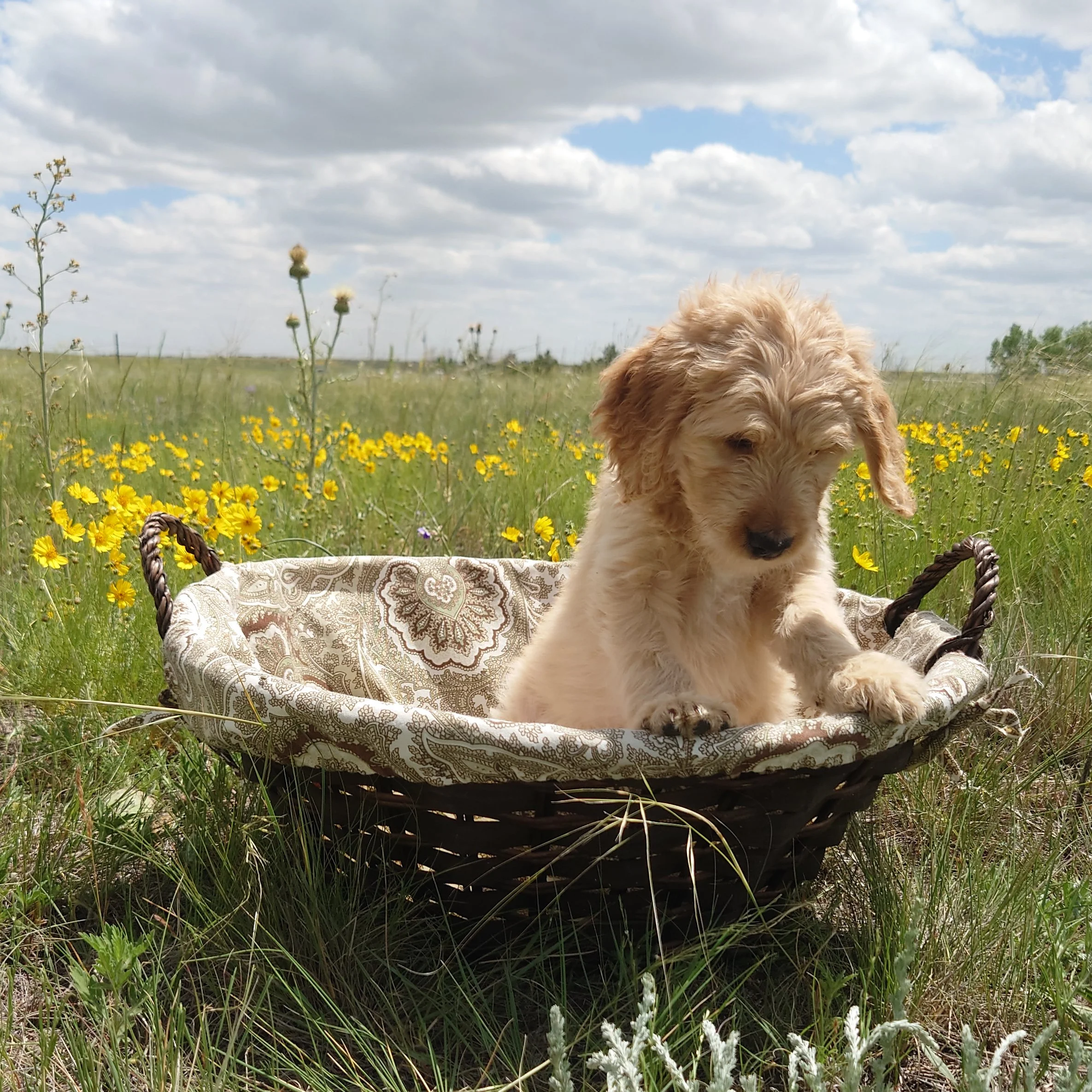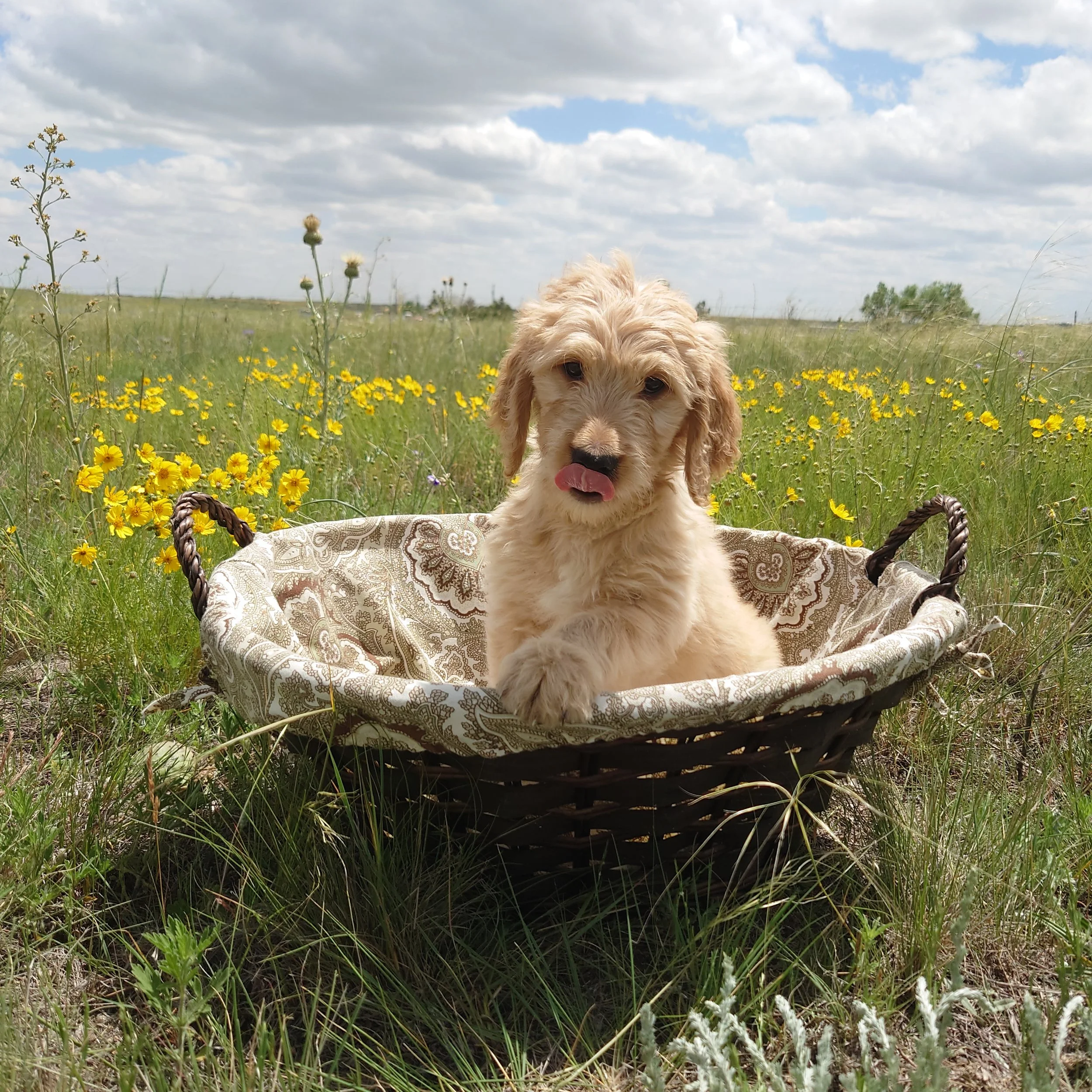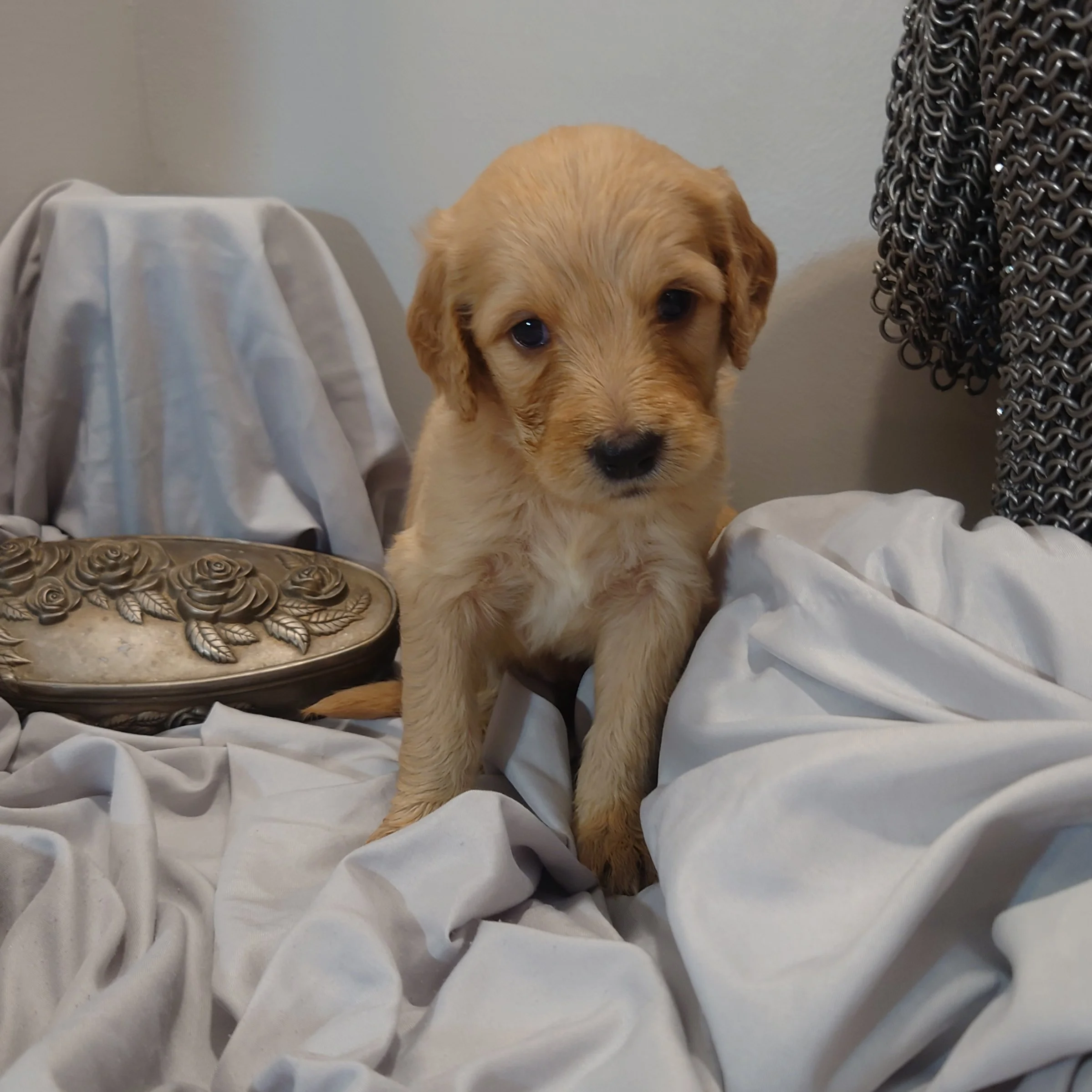 I was born April 21st, 2025. I am a female. My parents are, Standard Poodle Mom: Freya and Golden Retriever Dad: Ziggy. I am a F1 Goldendoodle.