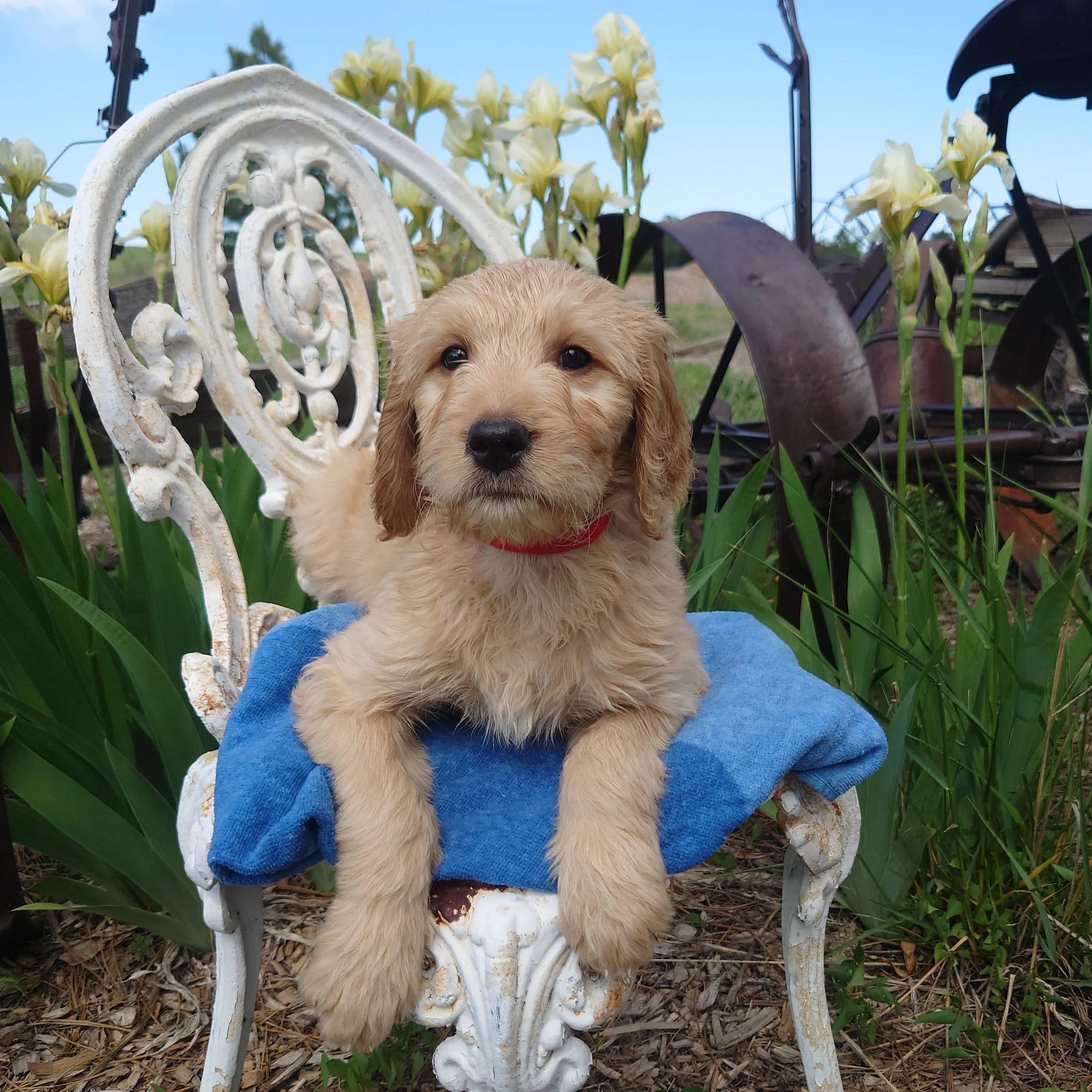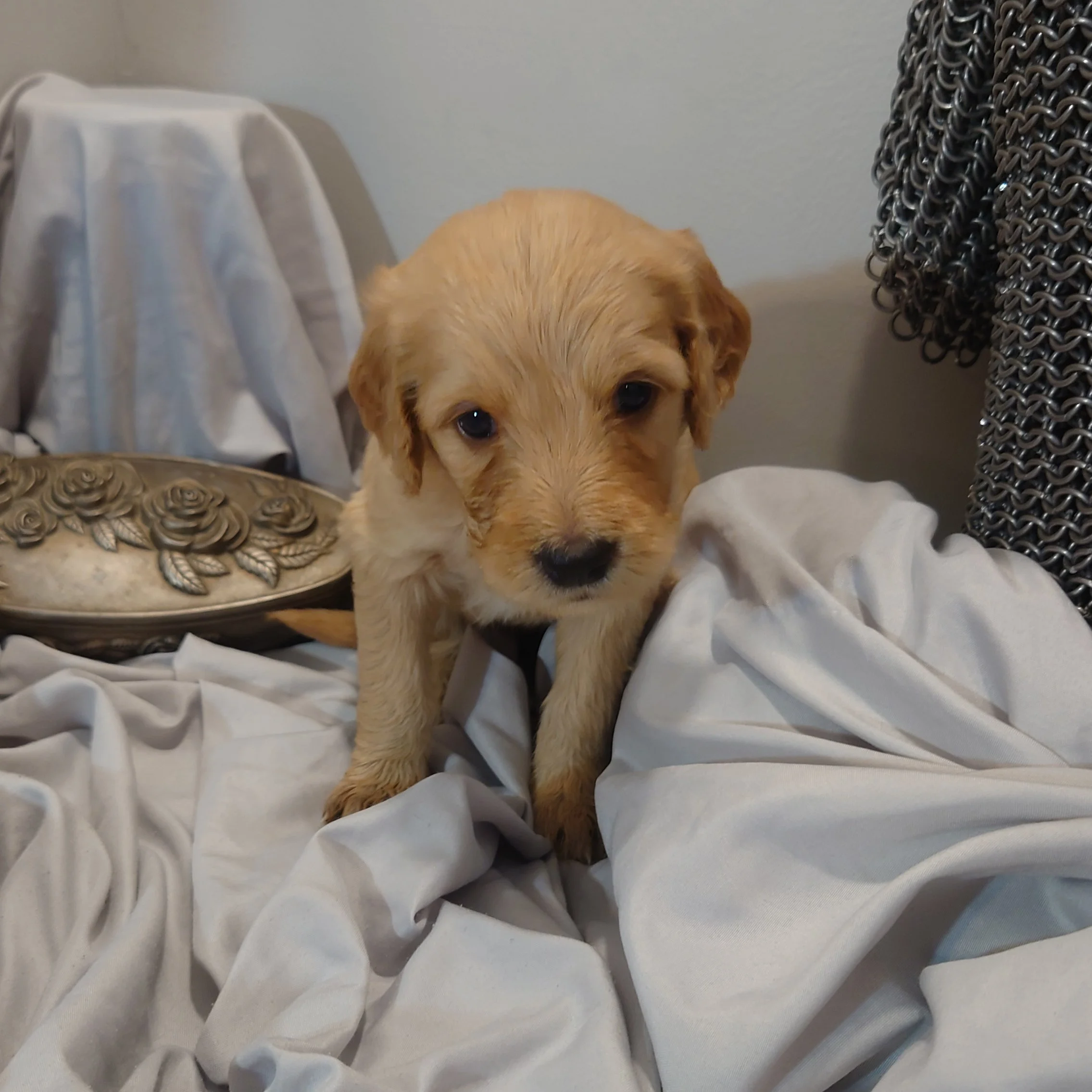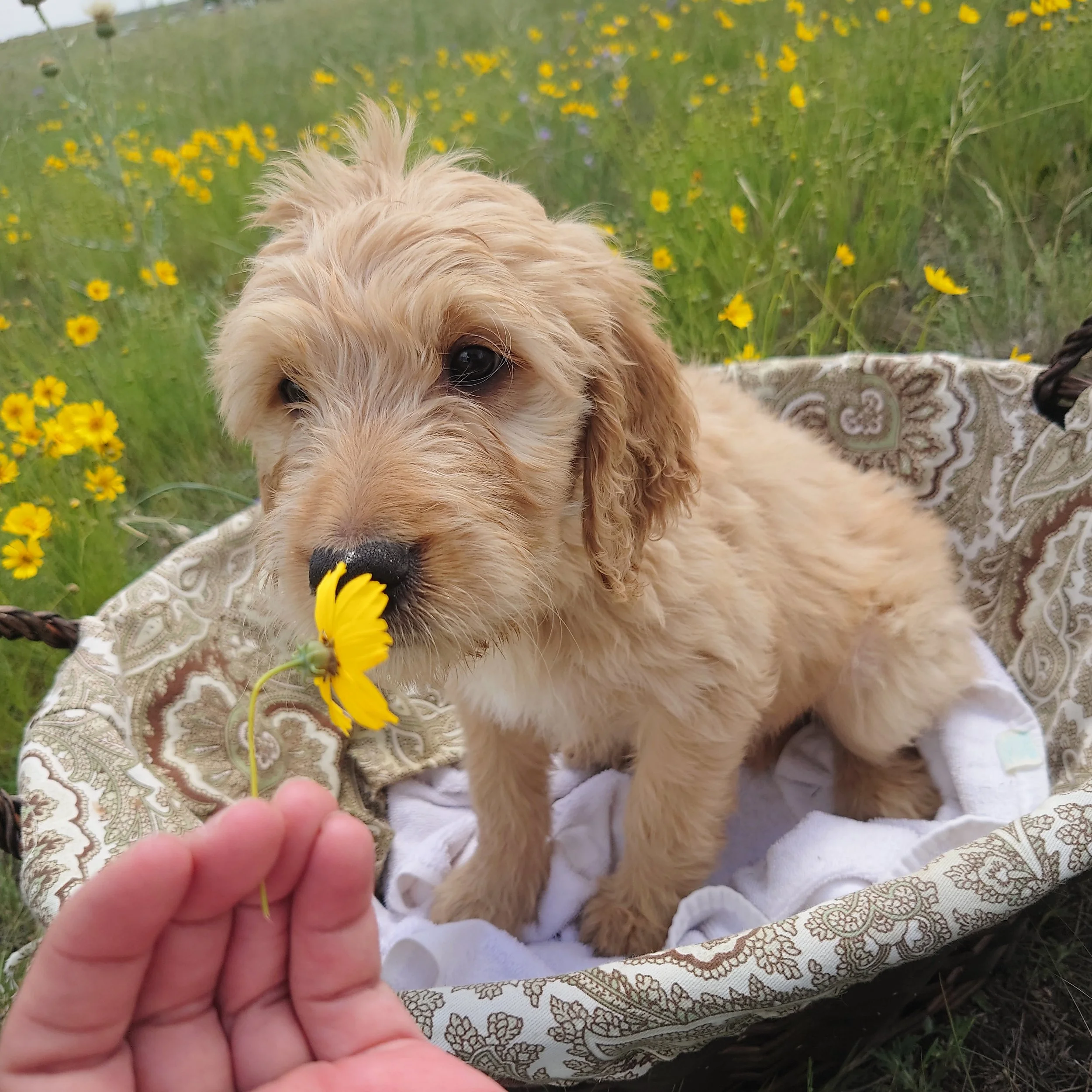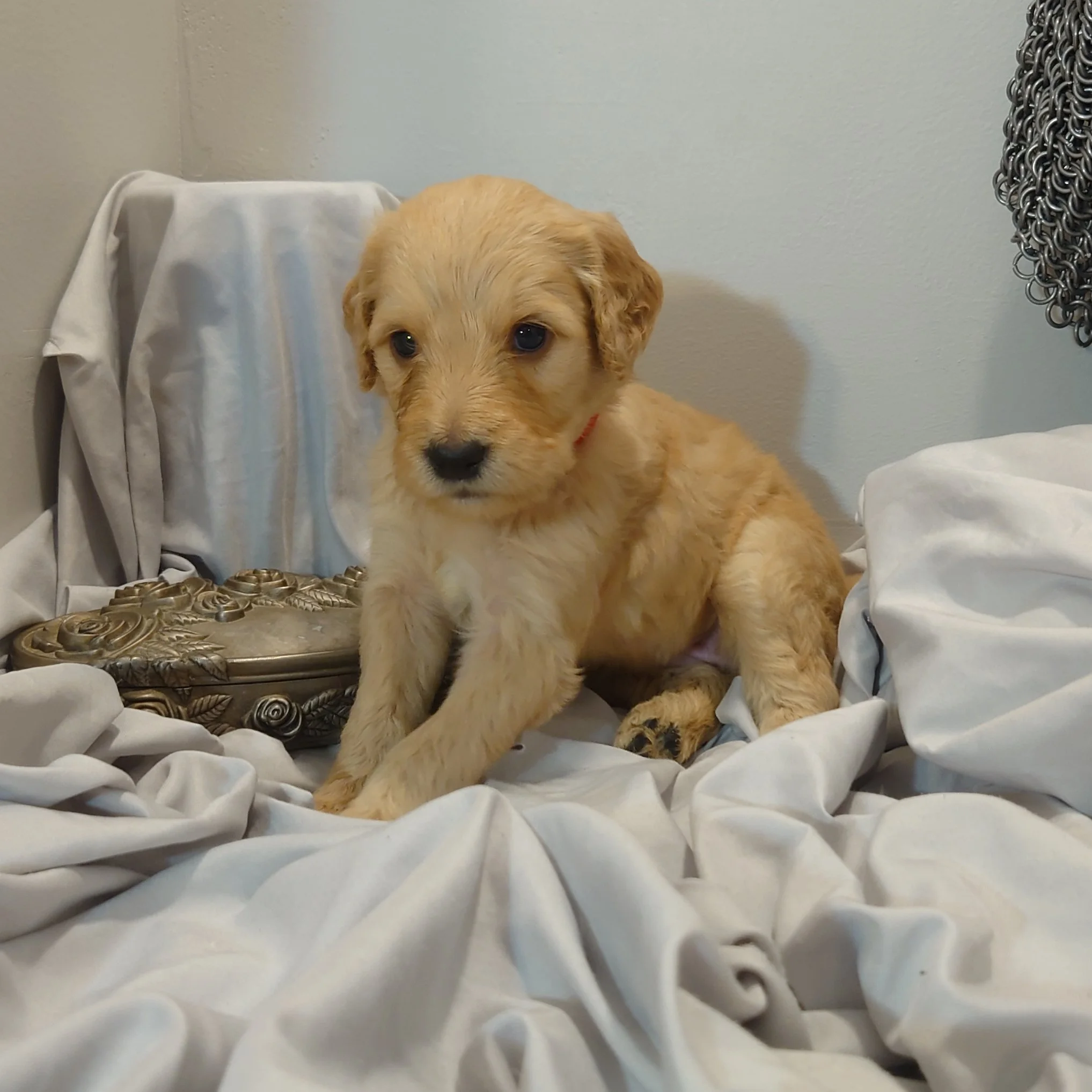 I was born April 21st, 2025. I am a female. My parents are, Standard Poodle Mom: Freya and Golden Retriever Dad: Ziggy. I am a F1 Goldendoodle.