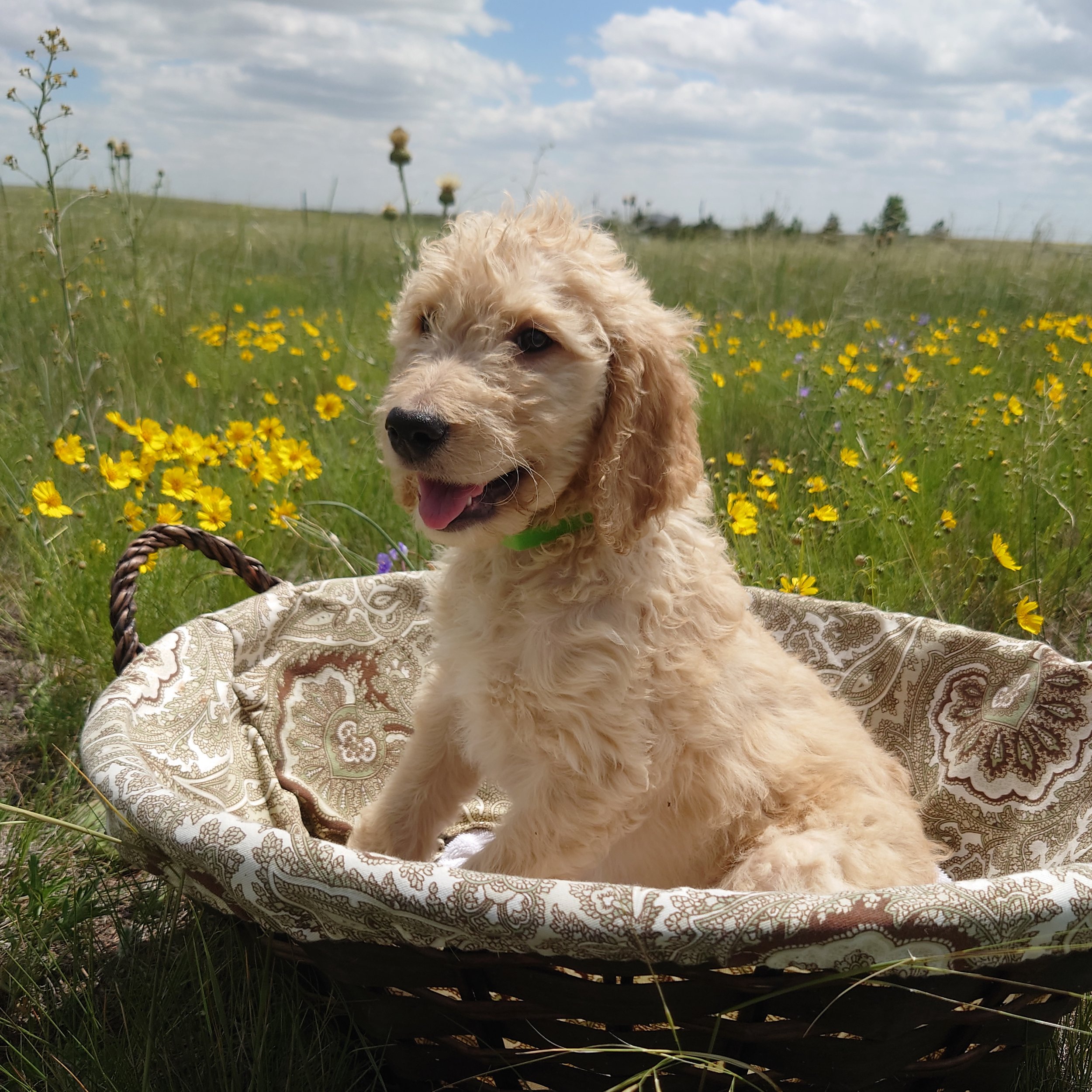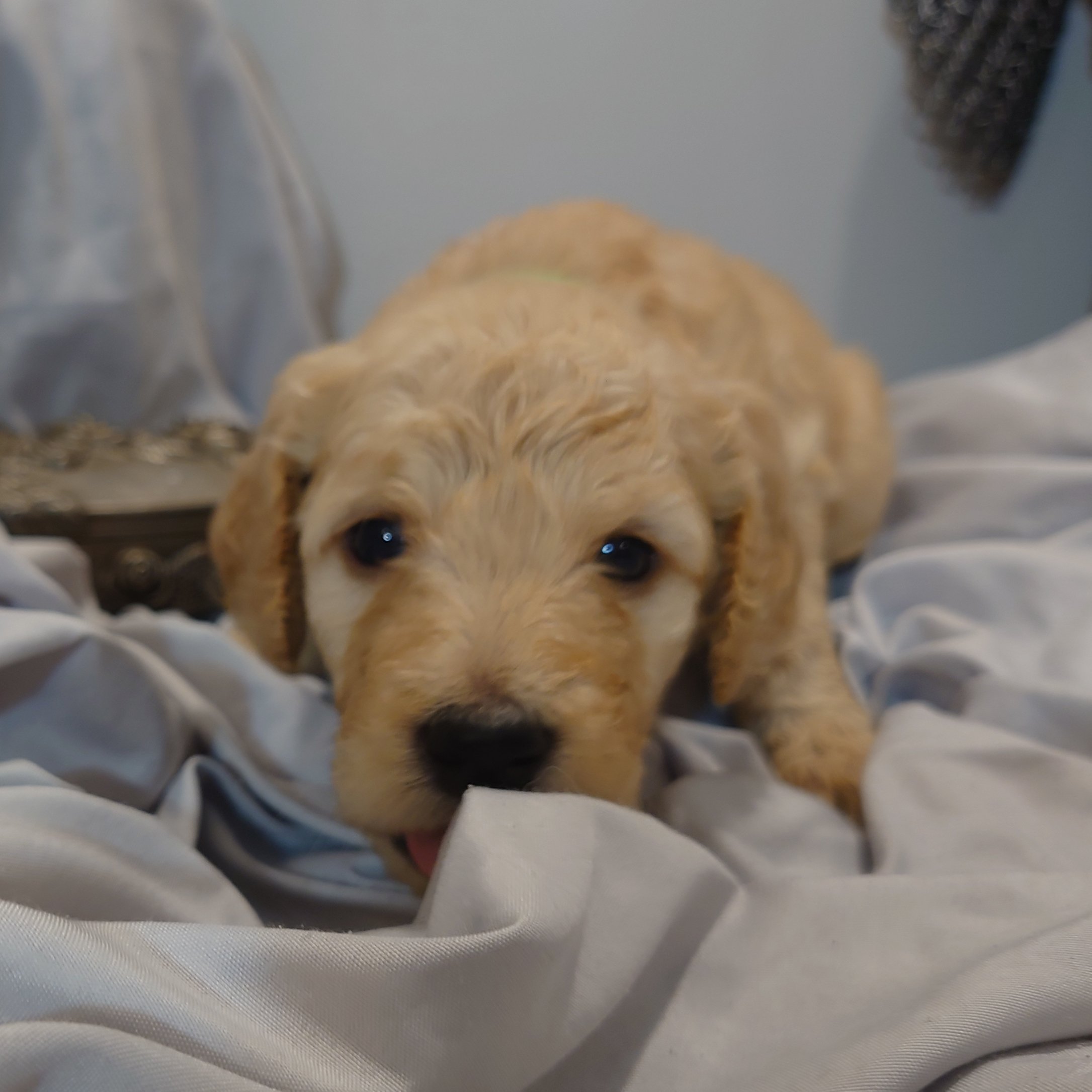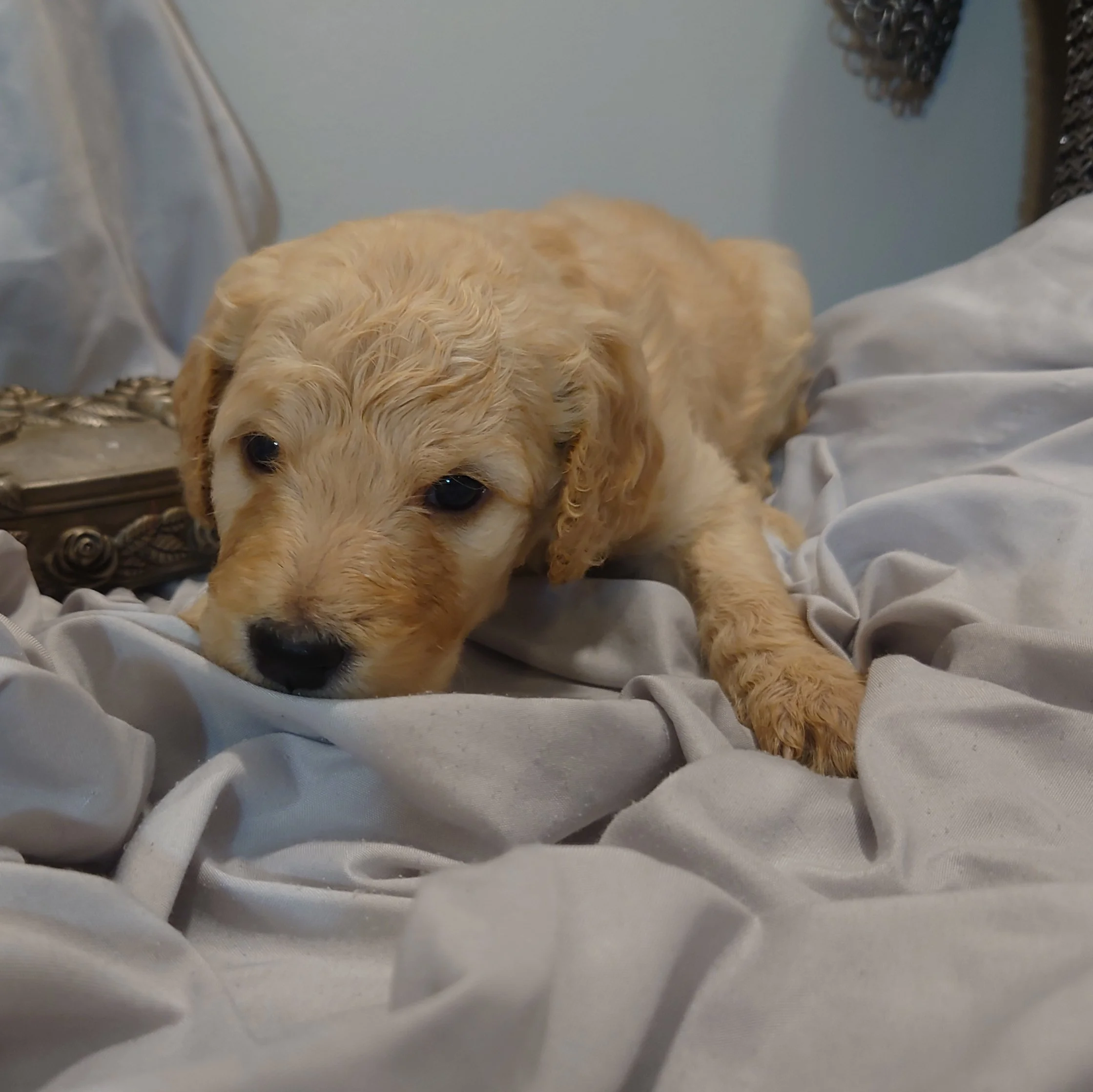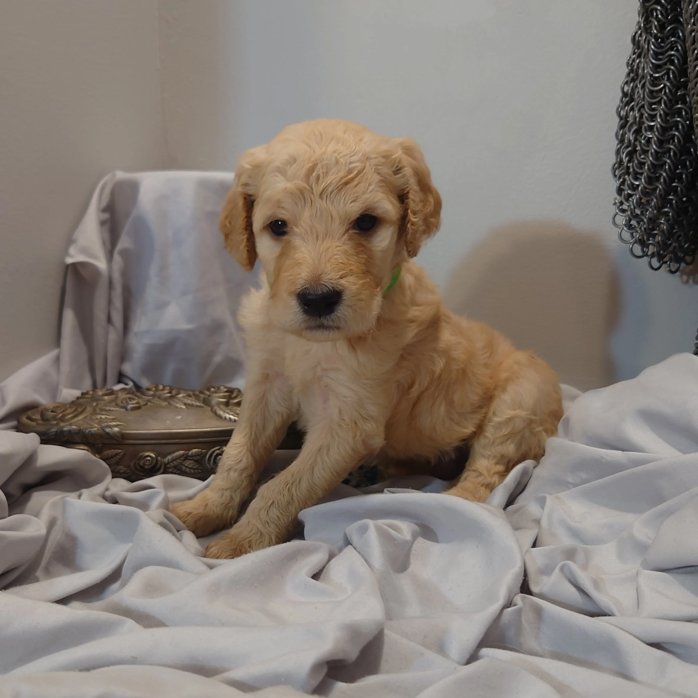 I was born April 21st, 2025. I am a male. My parents are, Standard Poodle Mom: Freya and Golden Retriever Dad: Ziggy. I am a F1 Goldendoodle.