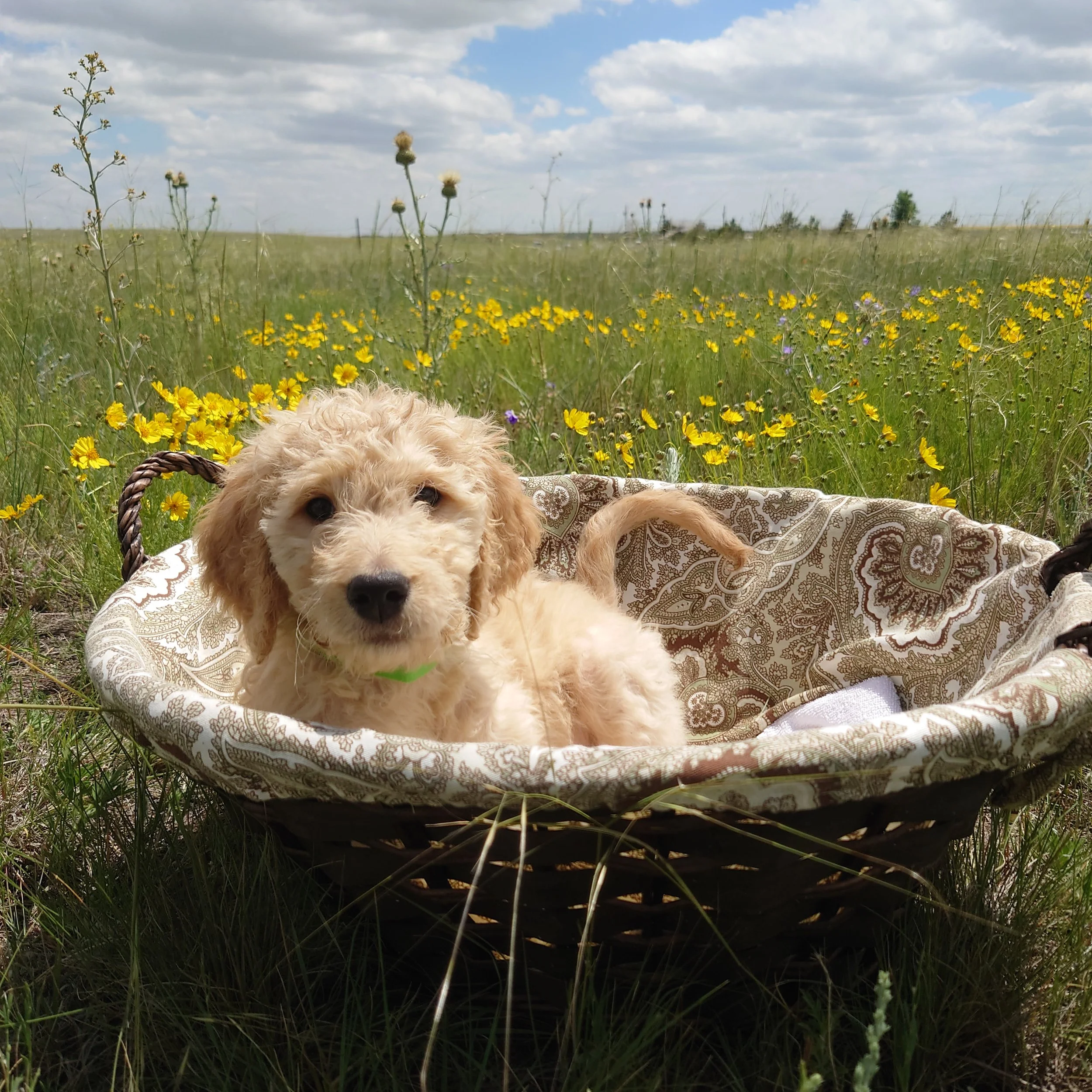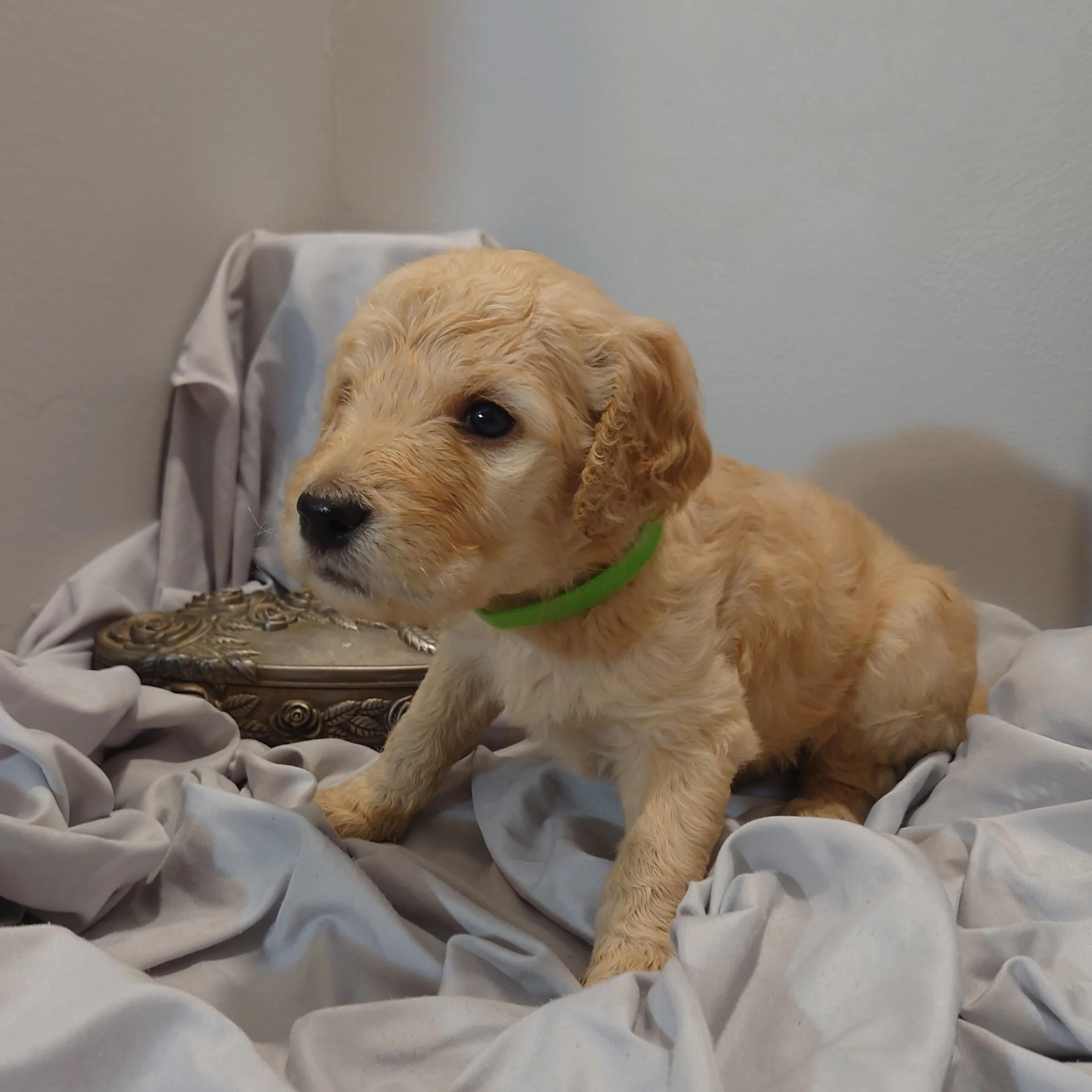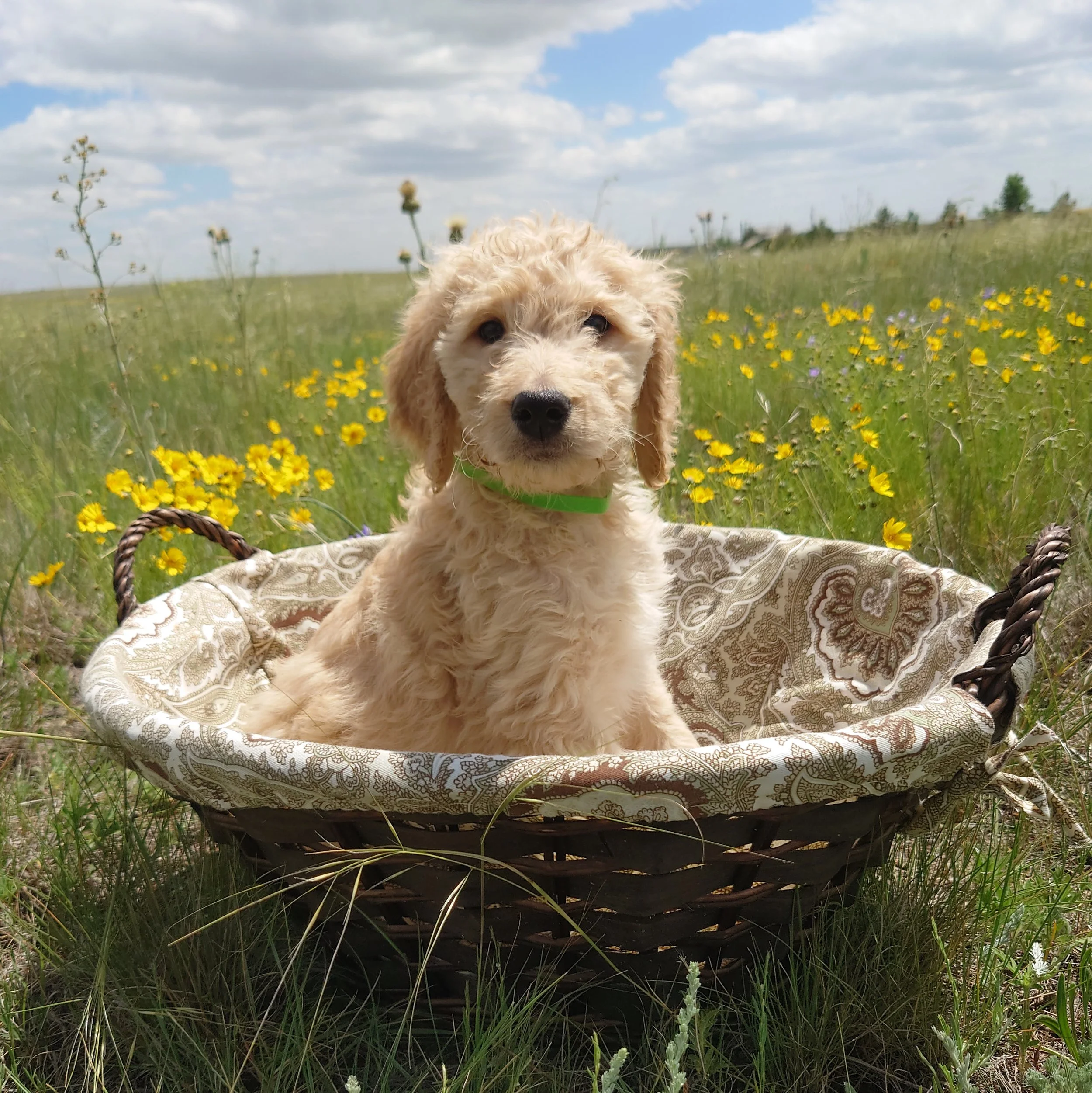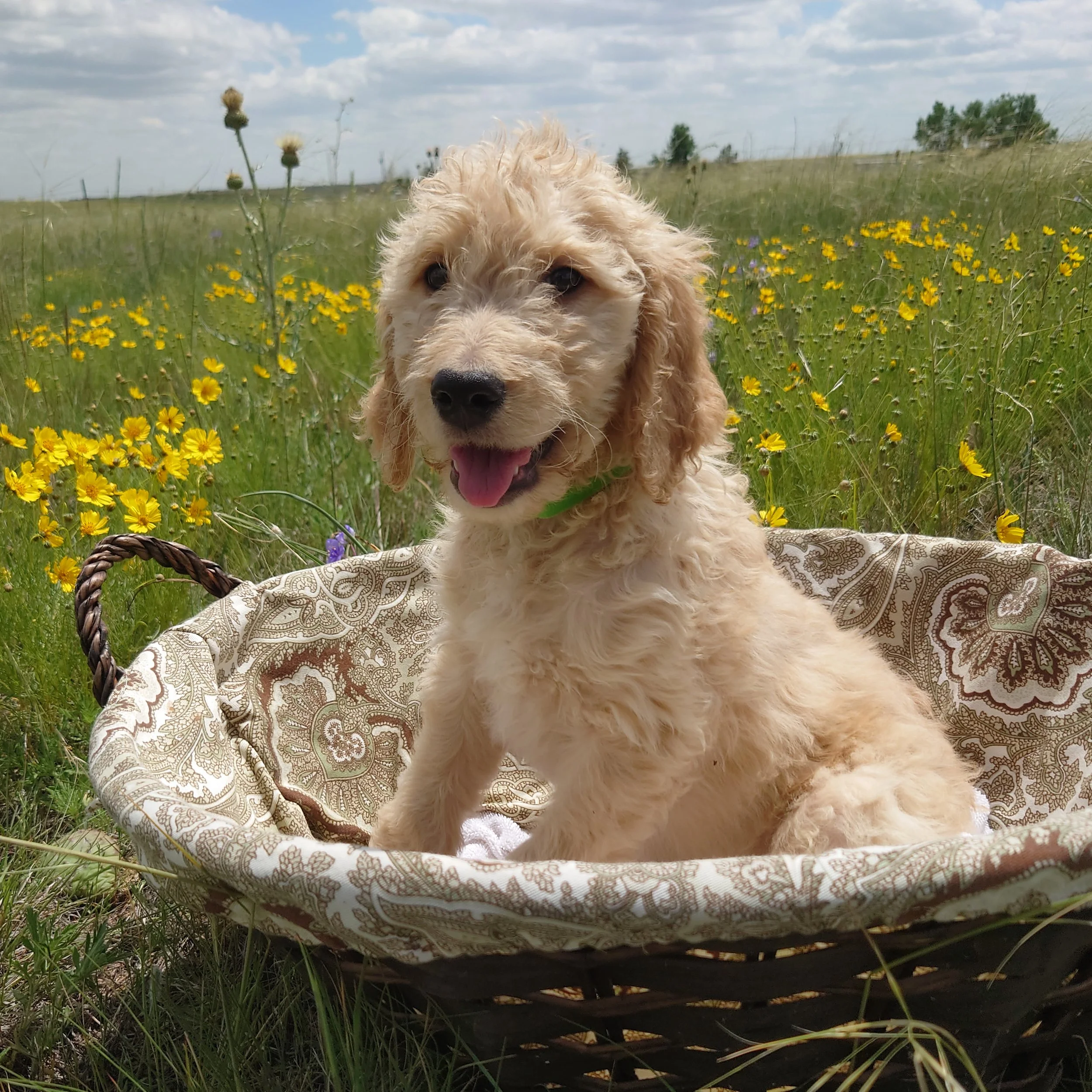 I was born April 21st, 2025. I am a male. My parents are, Standard Poodle Mom: Freya and Golden Retriever Dad: Ziggy. I am a F1 Goldendoodle.