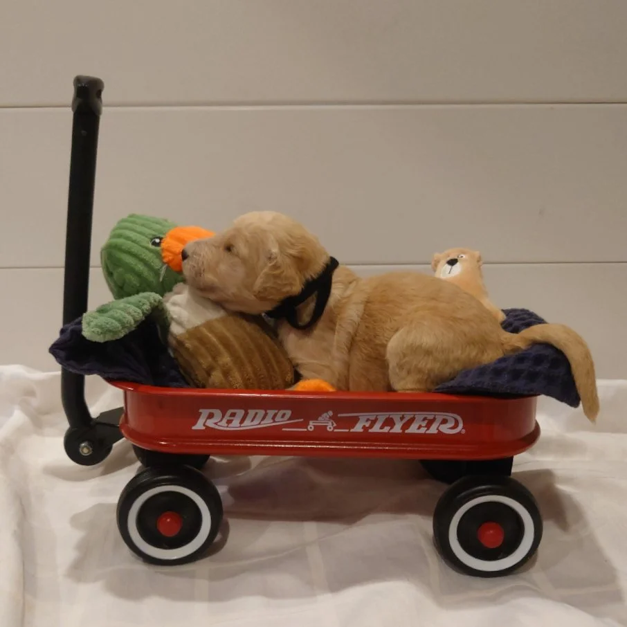 I was born February 28th, 2026. I am a male. My parents are, Standard Poodle Mom: Freya and Golden Retriever Dad: Ziggy. I am a F1 Goldendoodle.